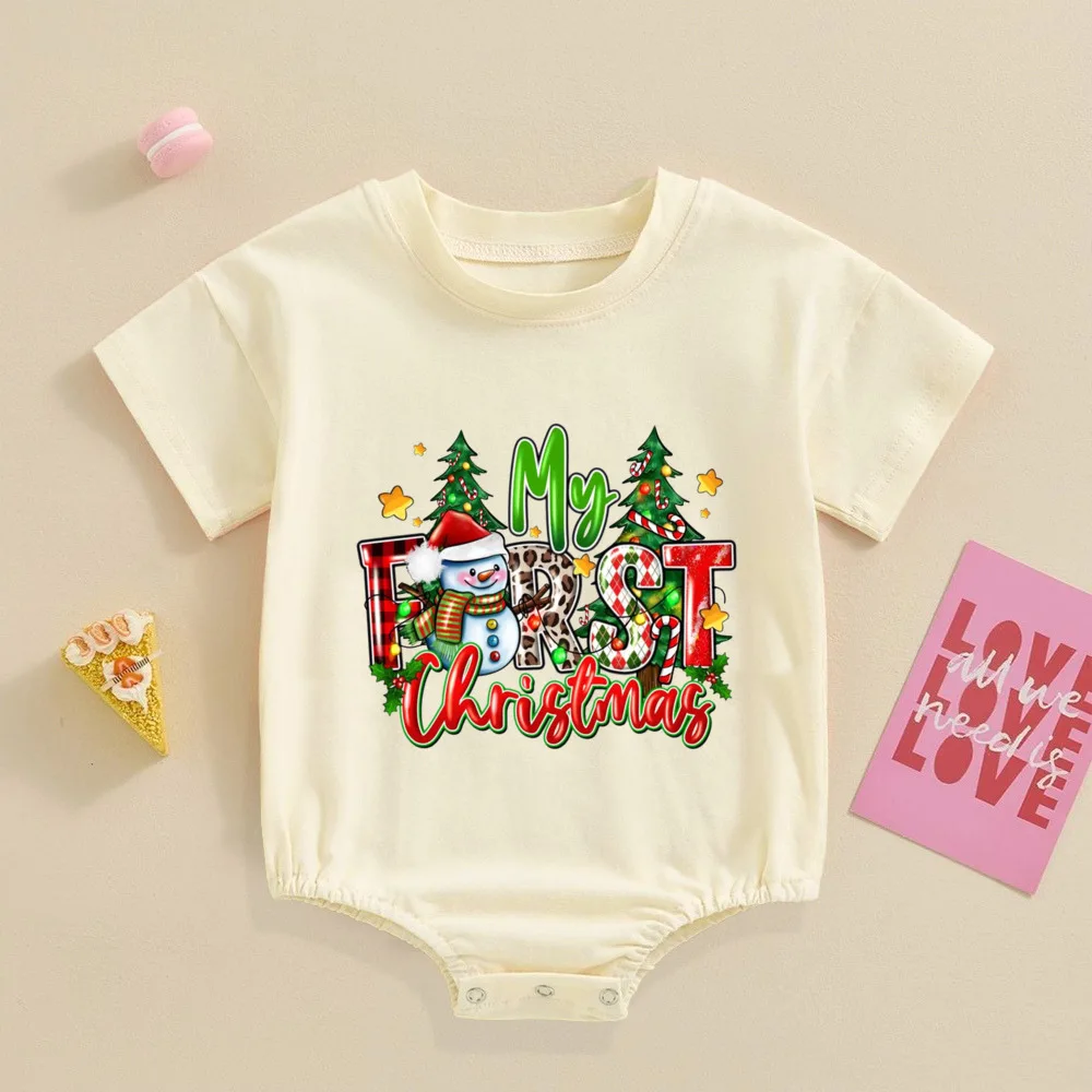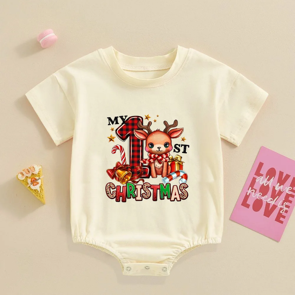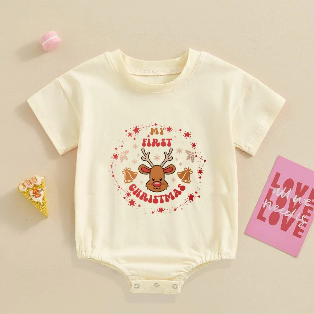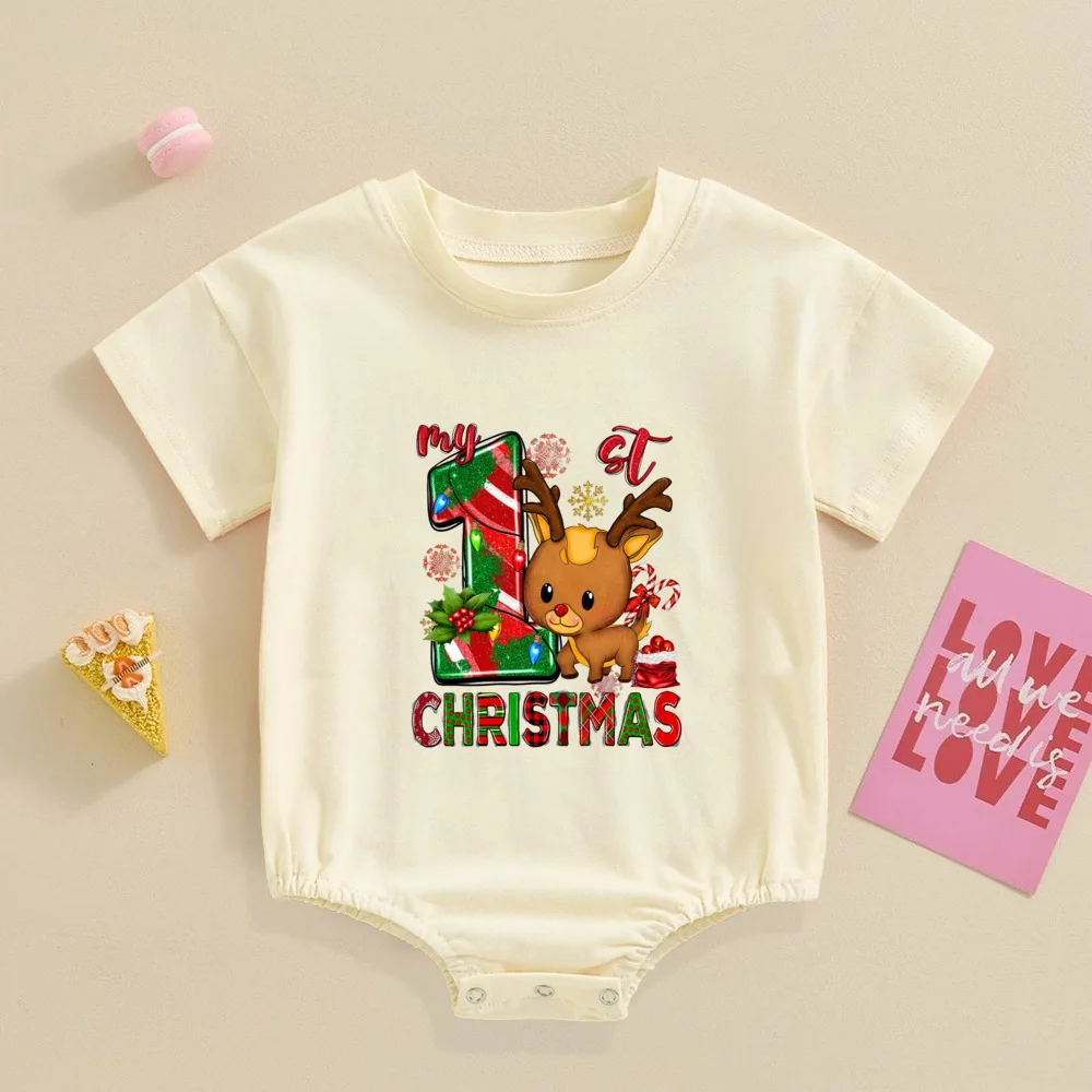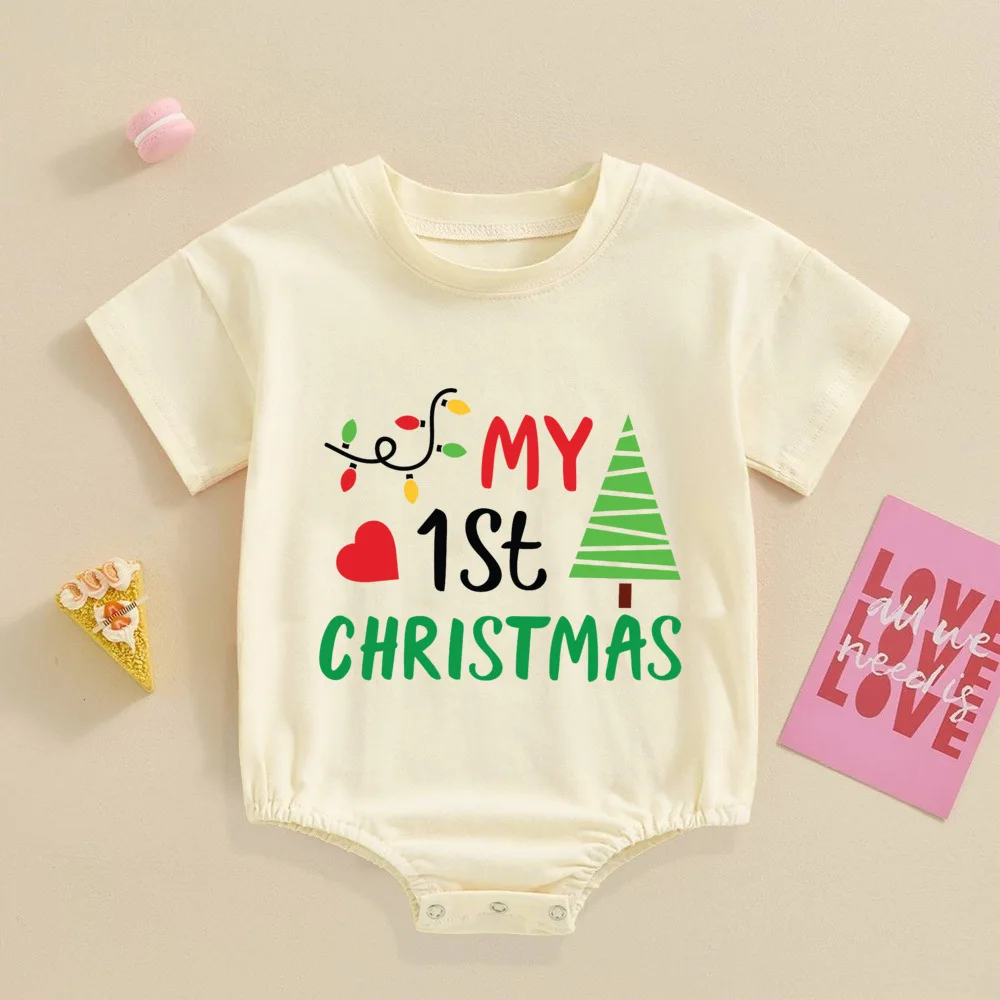 My 1st Christmas Printed Baby Bubble Romper Recién nacido Body de manga corta Traje de bautismo grande para niños pequeños Ropa de fiesta de Navidad