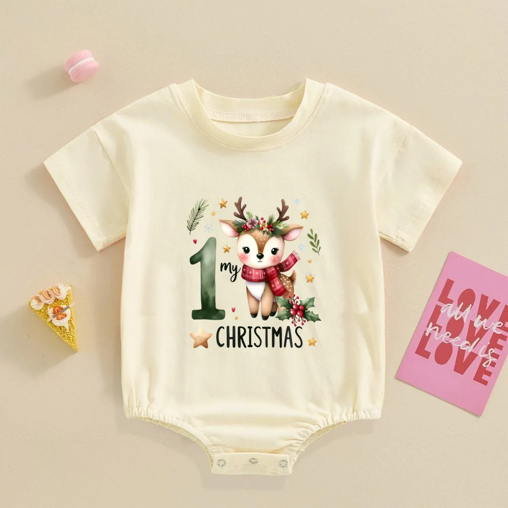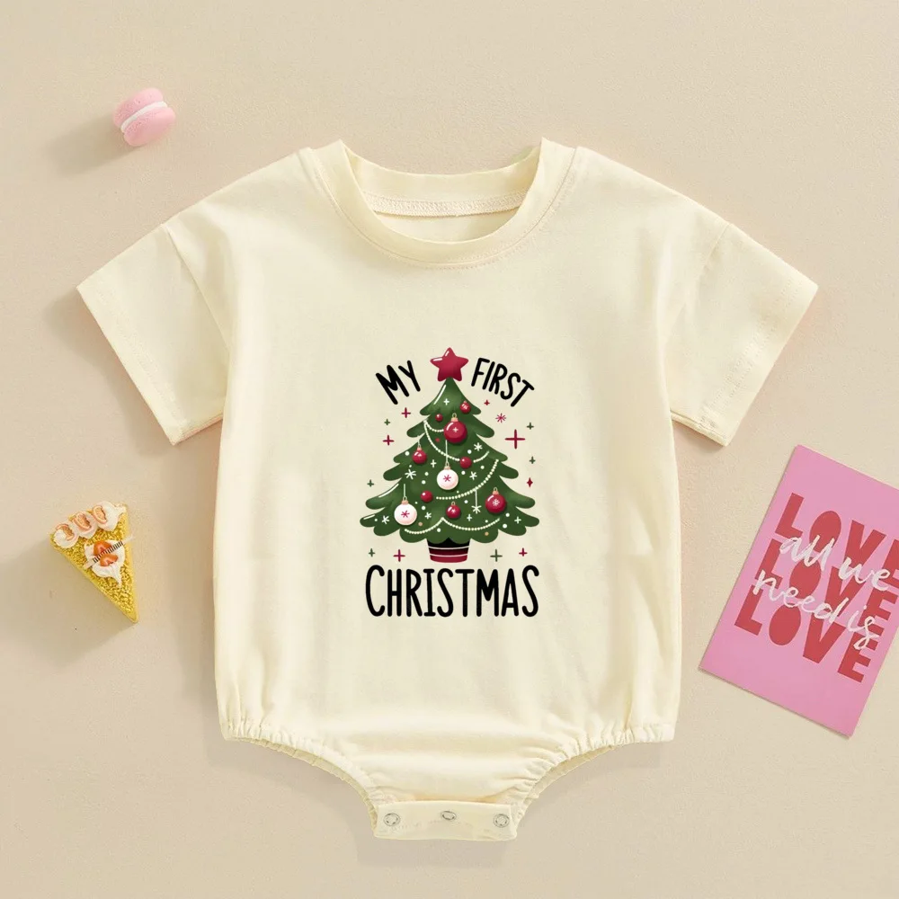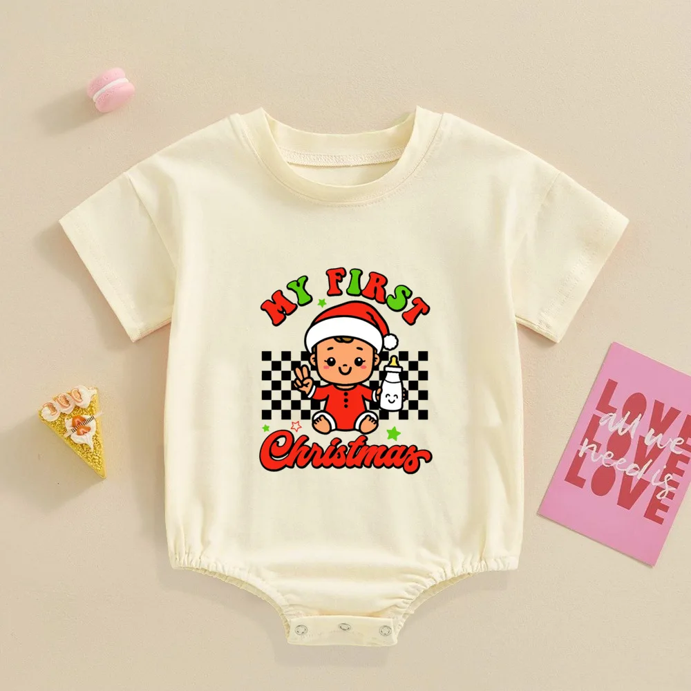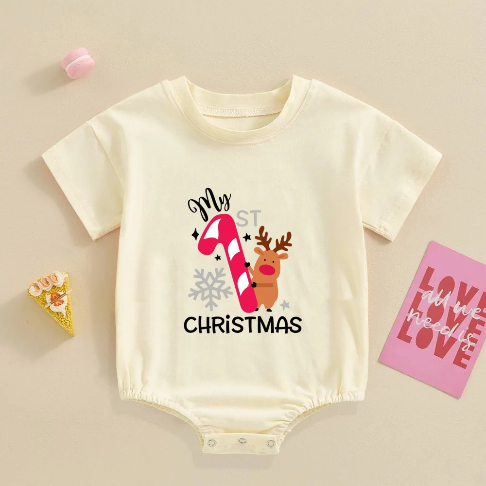 My 1st Christmas Printed Baby Bubble Romper Recién nacido Body de manga corta Traje de bautismo grande para niños pequeños Ropa de fiesta de Navidad