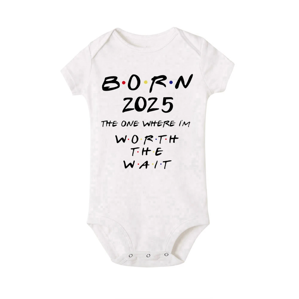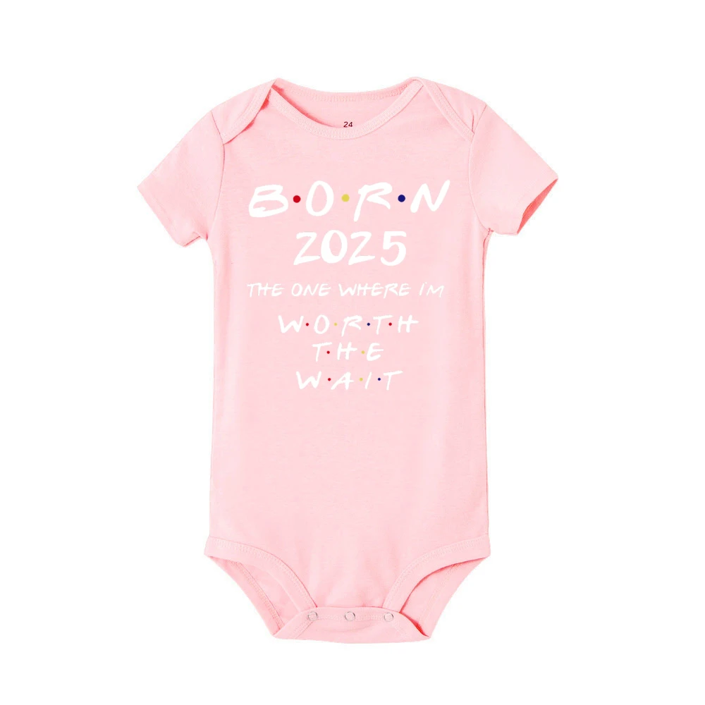 Nacido 2025 El Quiero Vale la pena la espera Mameluco Bebé Anuncio de embarazo Ropa para recién nacidos Body divertido de manga corta para bebé