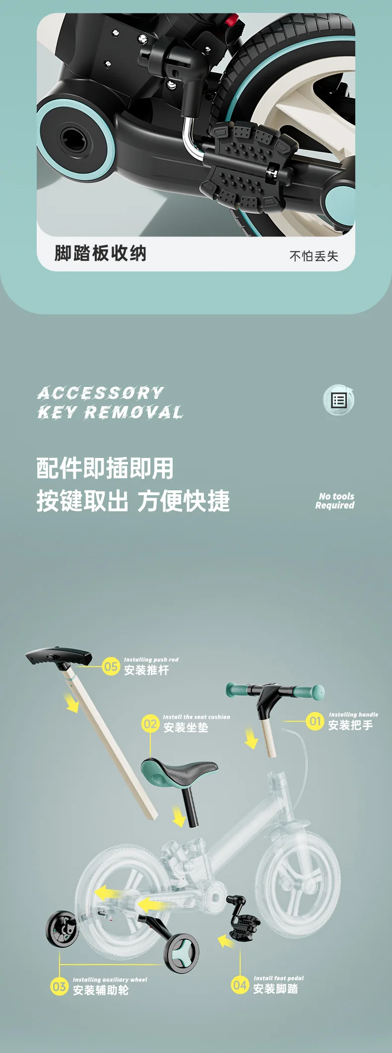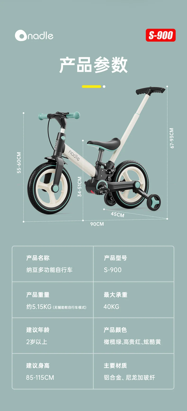 Nadle Nueva bicicleta de equilibrio multifuncional para niños No requiere instalación Bicicletas plegables