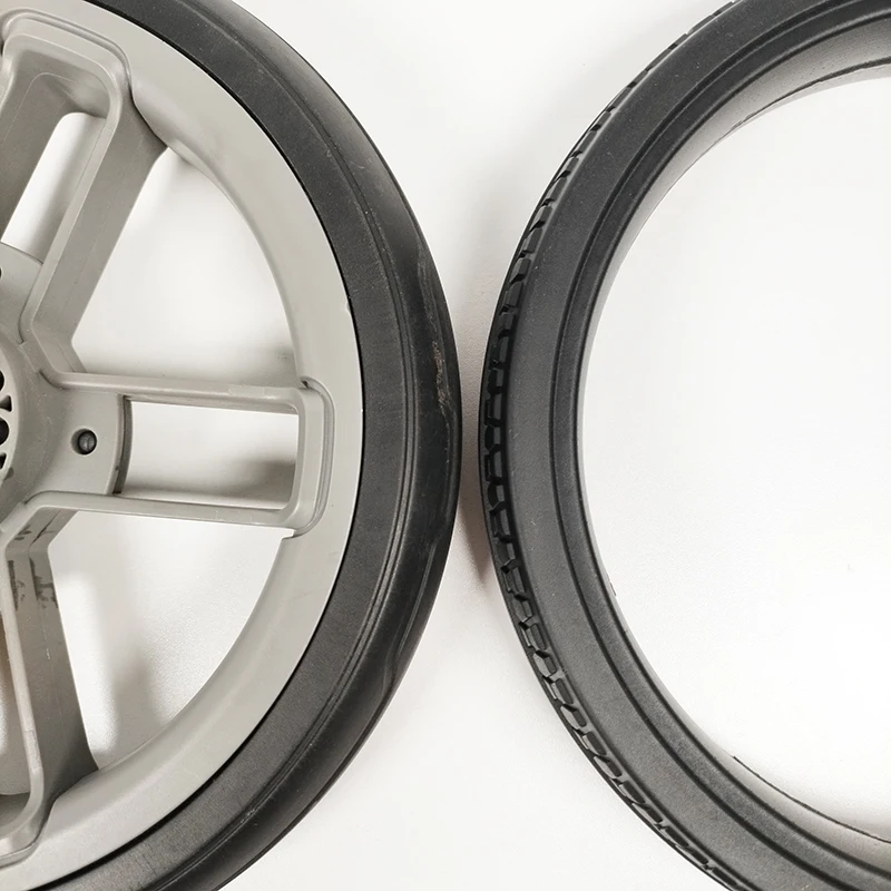 Este neumático está hecho de material de PU sin cámara, que tiene una mayor elasticidad. Para la fiabilidad de la instalación, el tamaño antes de la instalación será ligeramente más pequeño que el tamaño requerido.