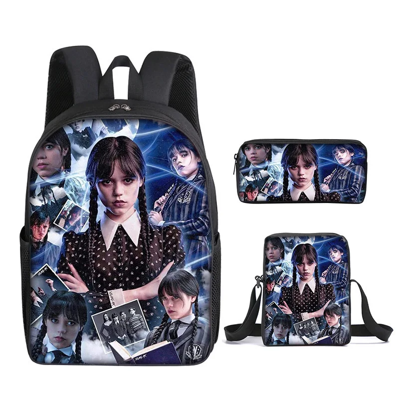 Comprar Nevermore Academy-Mochila de dibujos animados para niños y niñas, morral escolar para estudiantes de primaria y secundaria, Juego de 3 unidades