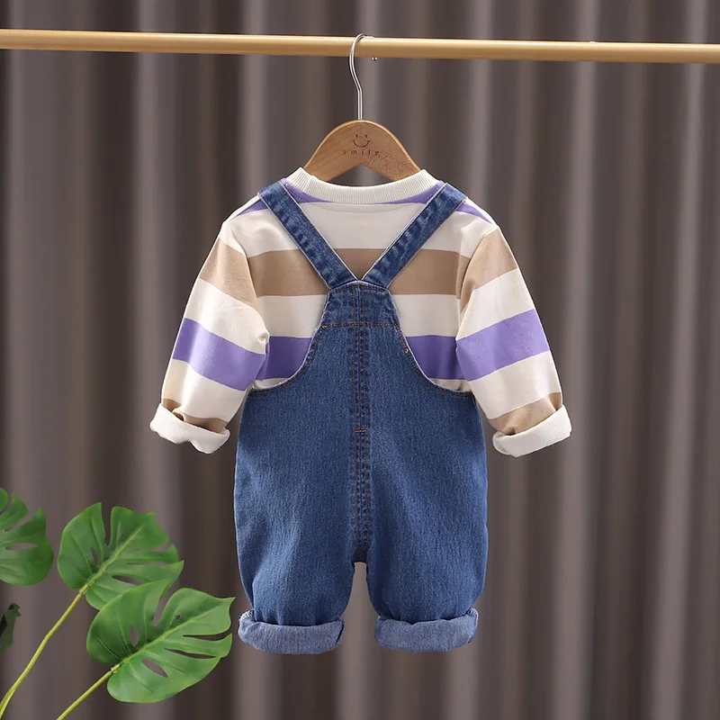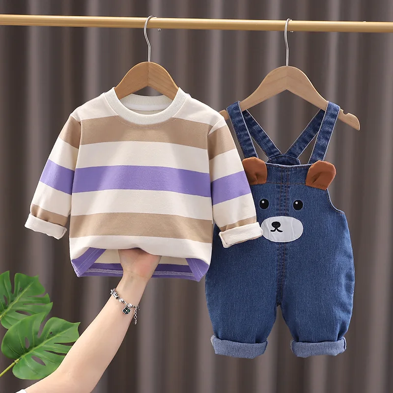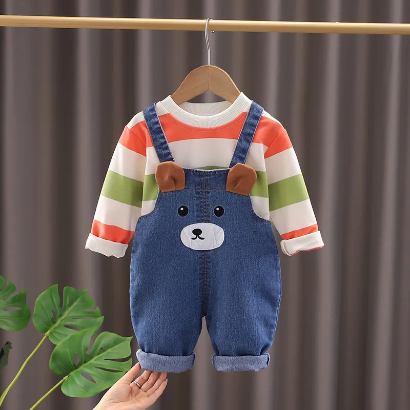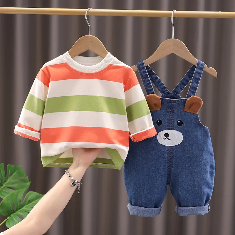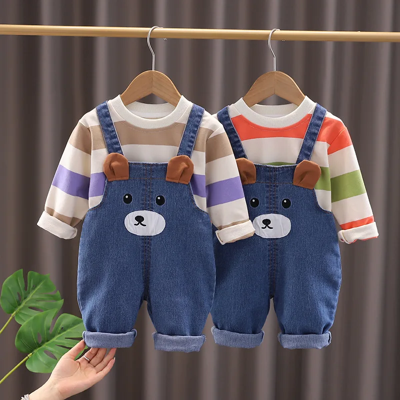 New Spring Autumn Baby Clothes Suit Children Boys Striped T-Shirt Overalls 2Pcs/Sets Infant Girls Clothing Set Kids Tracksuits For 0-5 Years