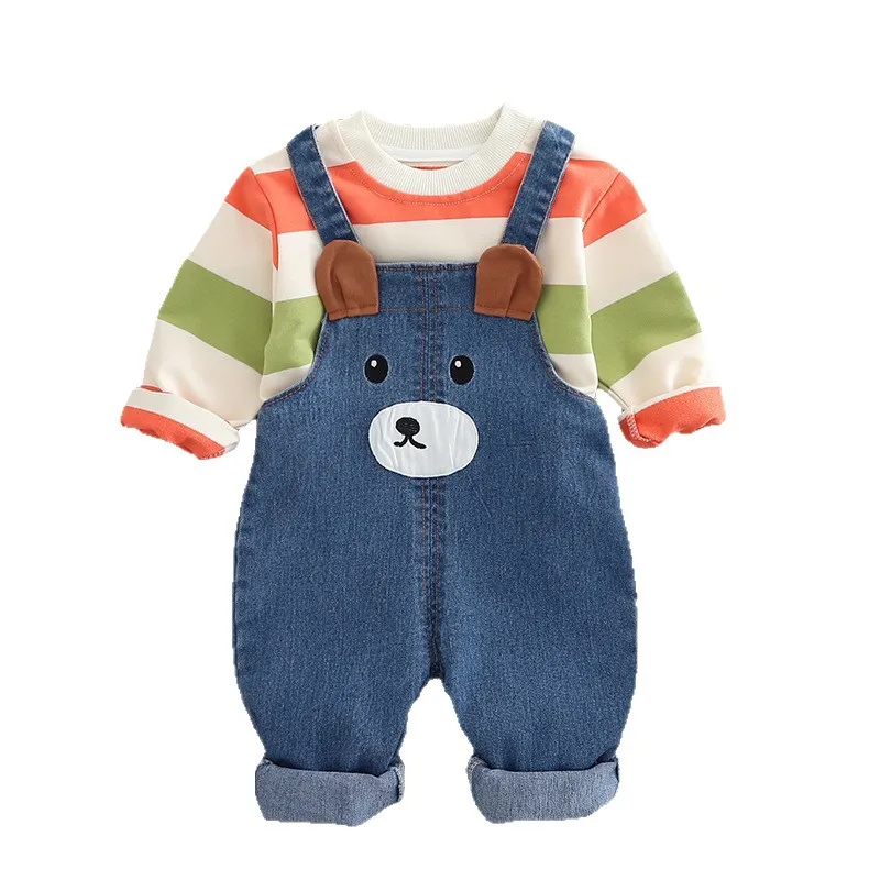 New Spring Autumn Baby Clothes Suit Children Boys Striped T-Shirt Overalls 2Pcs/Sets Infant Girls Clothing Set Kids Tracksuits For 0-5 Years