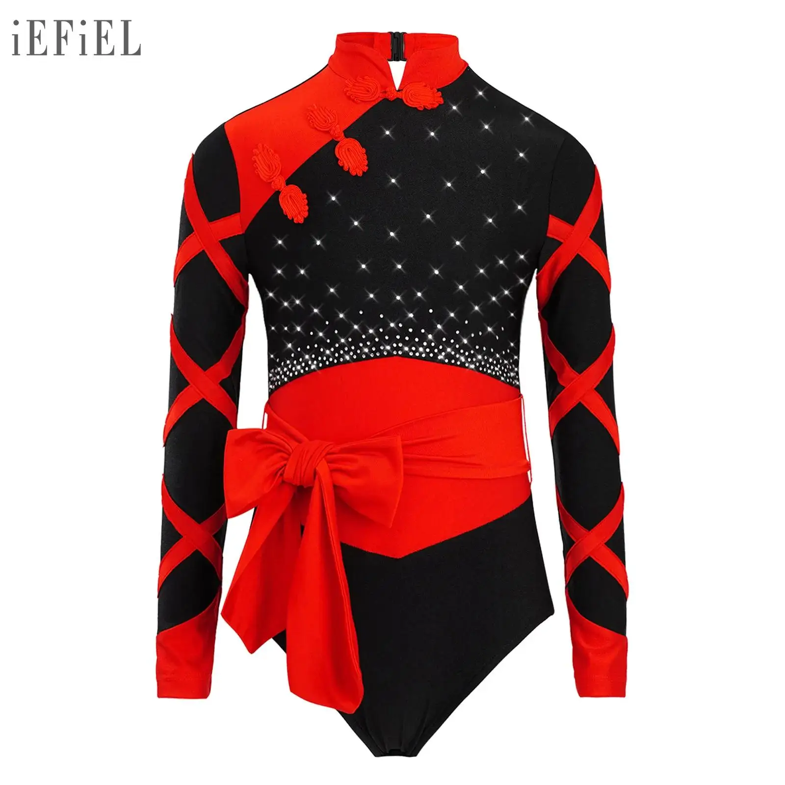 Comprar Niños Niñas estilo chino Ballet gimnasia leotardo manga larga nudo botón mono con cinturón Festival Cultural disfraces de fiesta