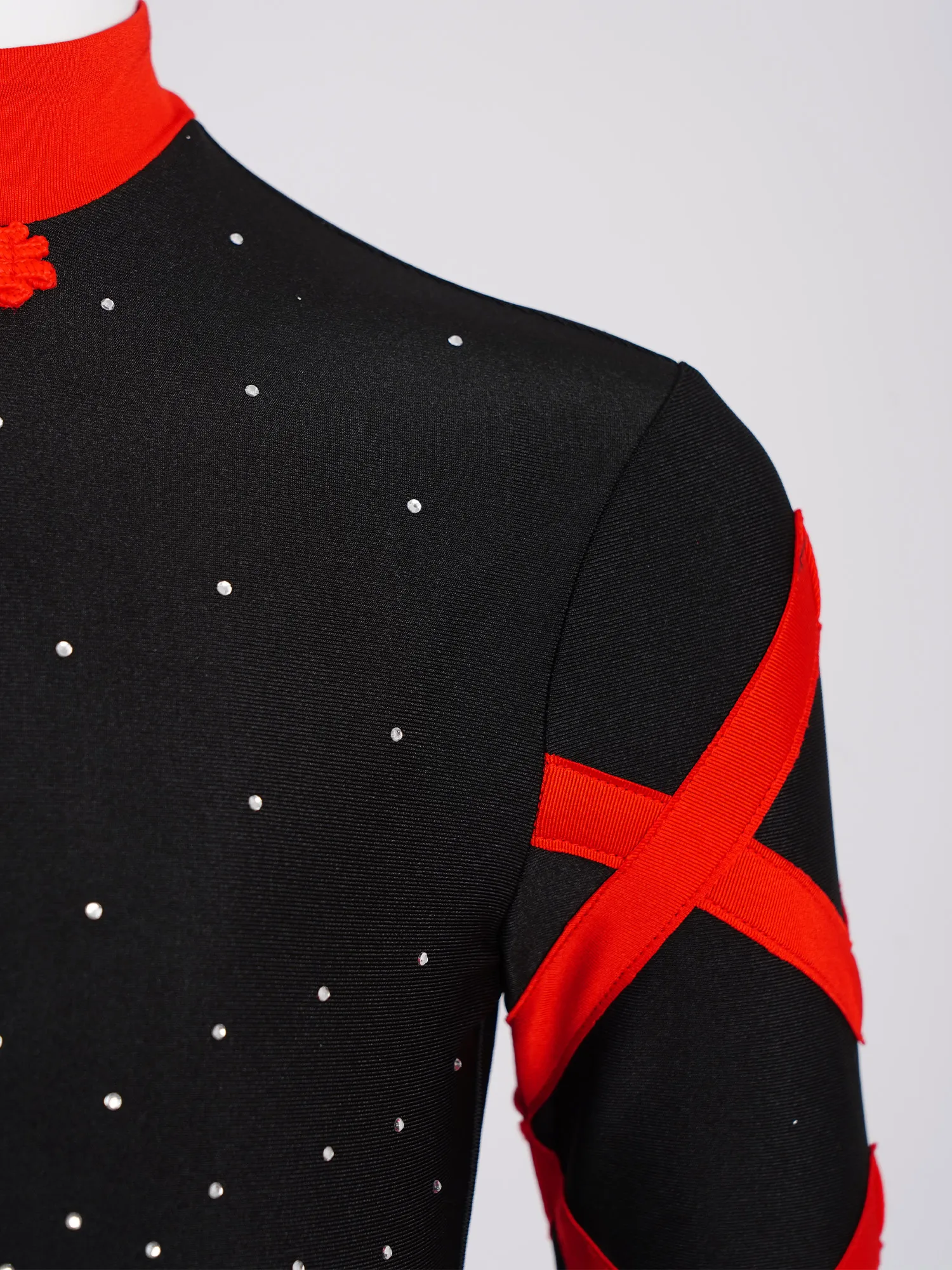 La manga larga proporciona más cobertura y es adecuada para diferentes temperaturas, mientras que los diamantes de imitación y el diseño de bloques de color aportan un aspecto moderno y llamativo.