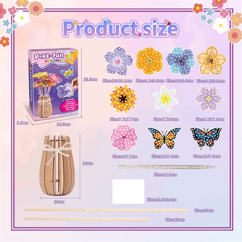 Niños tela Poking arte DIY rompecabezas Kit de pintura de punción juguetes artesanales tablero de poke de flores pegatinas regalos de cumpleaños para niños niña