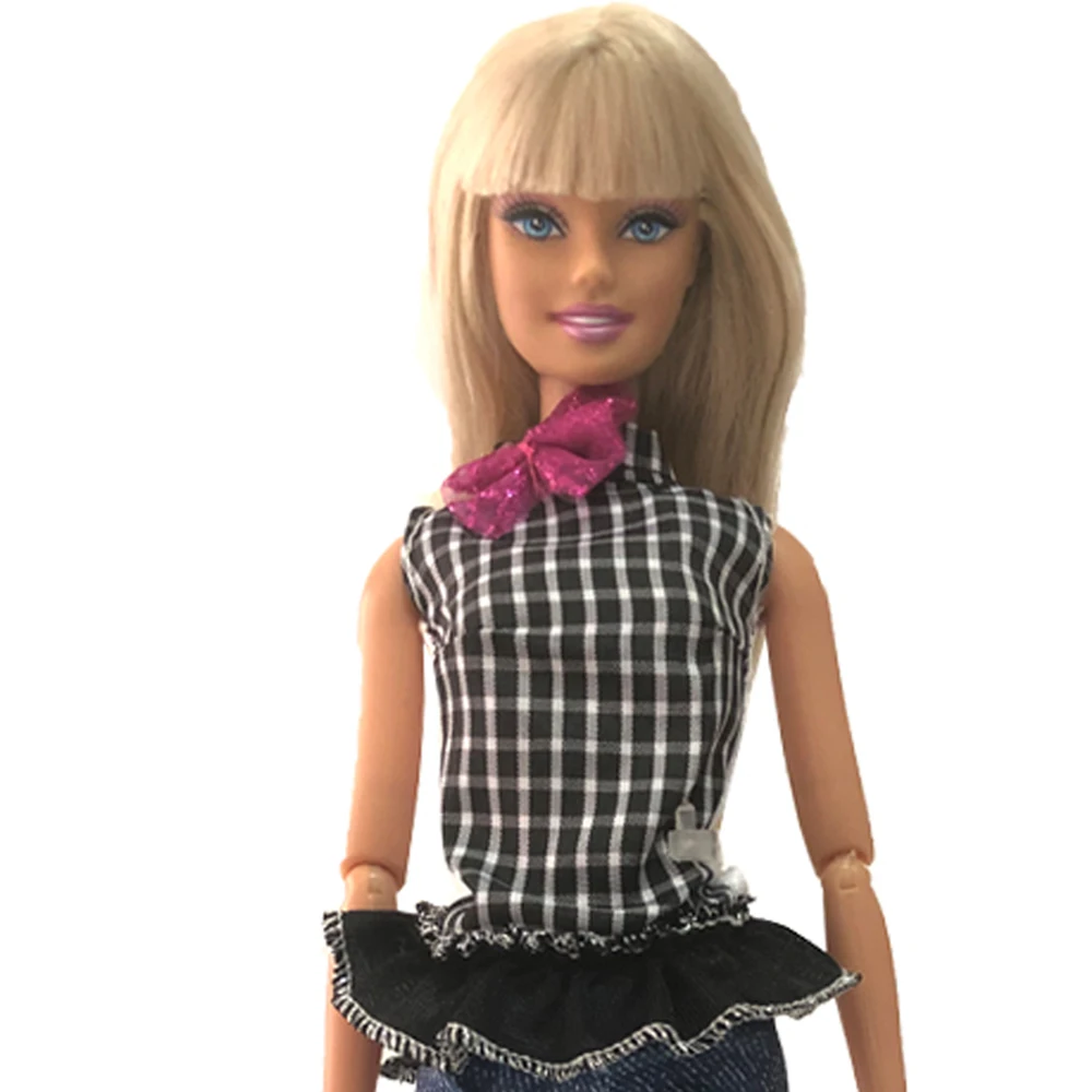 Comprar NK-Conjunto de ropa de moda oficial para muñeca Barbie, camisa negra sin mangas, ropa informal, pantalones vaqueros para muñeca 1/6, accesorios