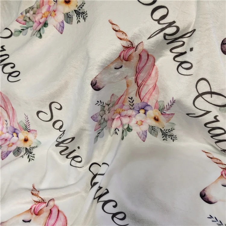 Nombre de recién nacido personalizado ZigZag unicornio dibujos animados bebé manta envolvente bebé infantil manta de microfibra cuna ropa de cama de bebé