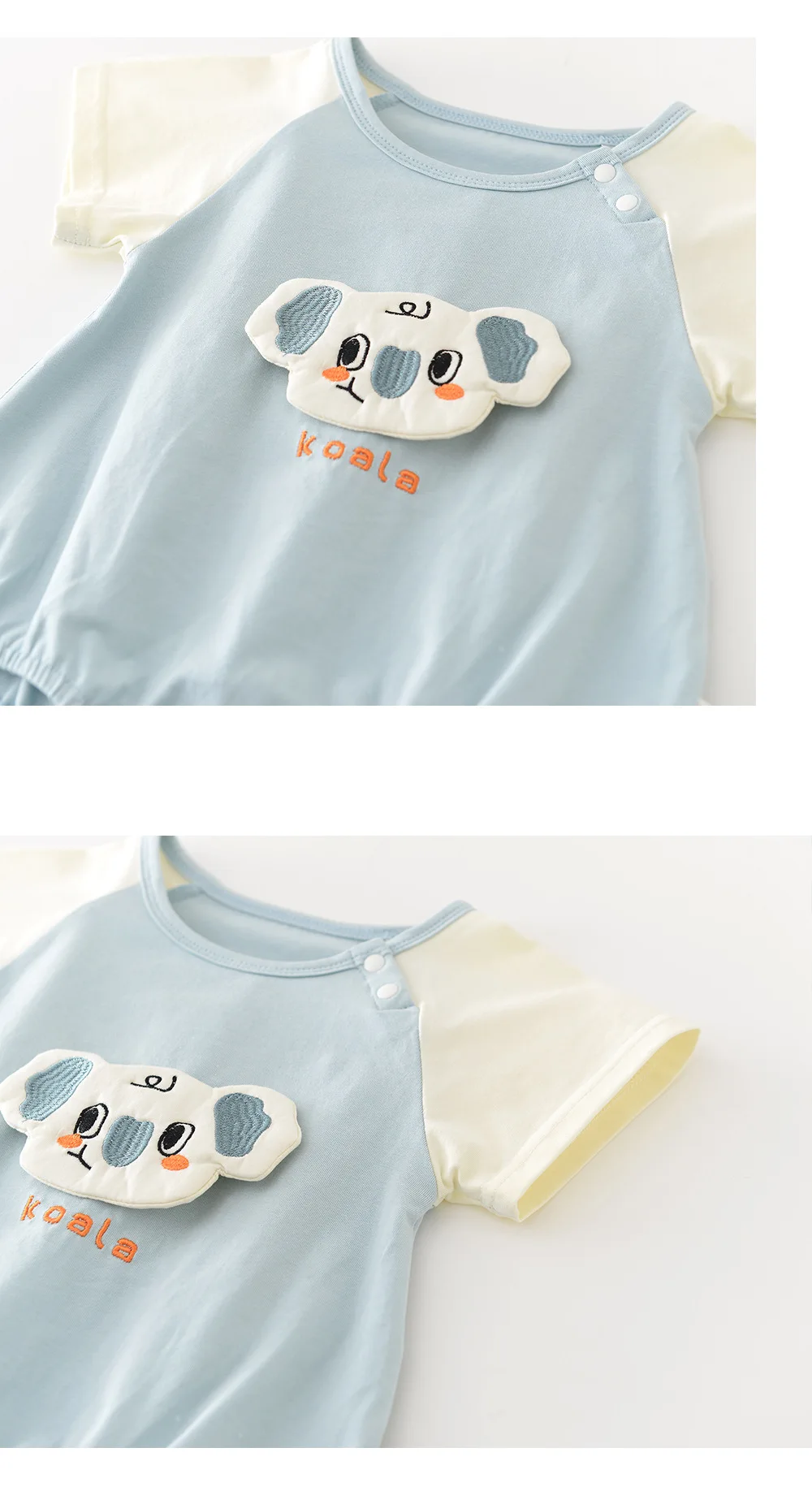 Novedad de verano, Body de estilo coreano para bebé, mono infantil de manga corta con estampado de dibujos animados de Koala bonito con cierre de botón