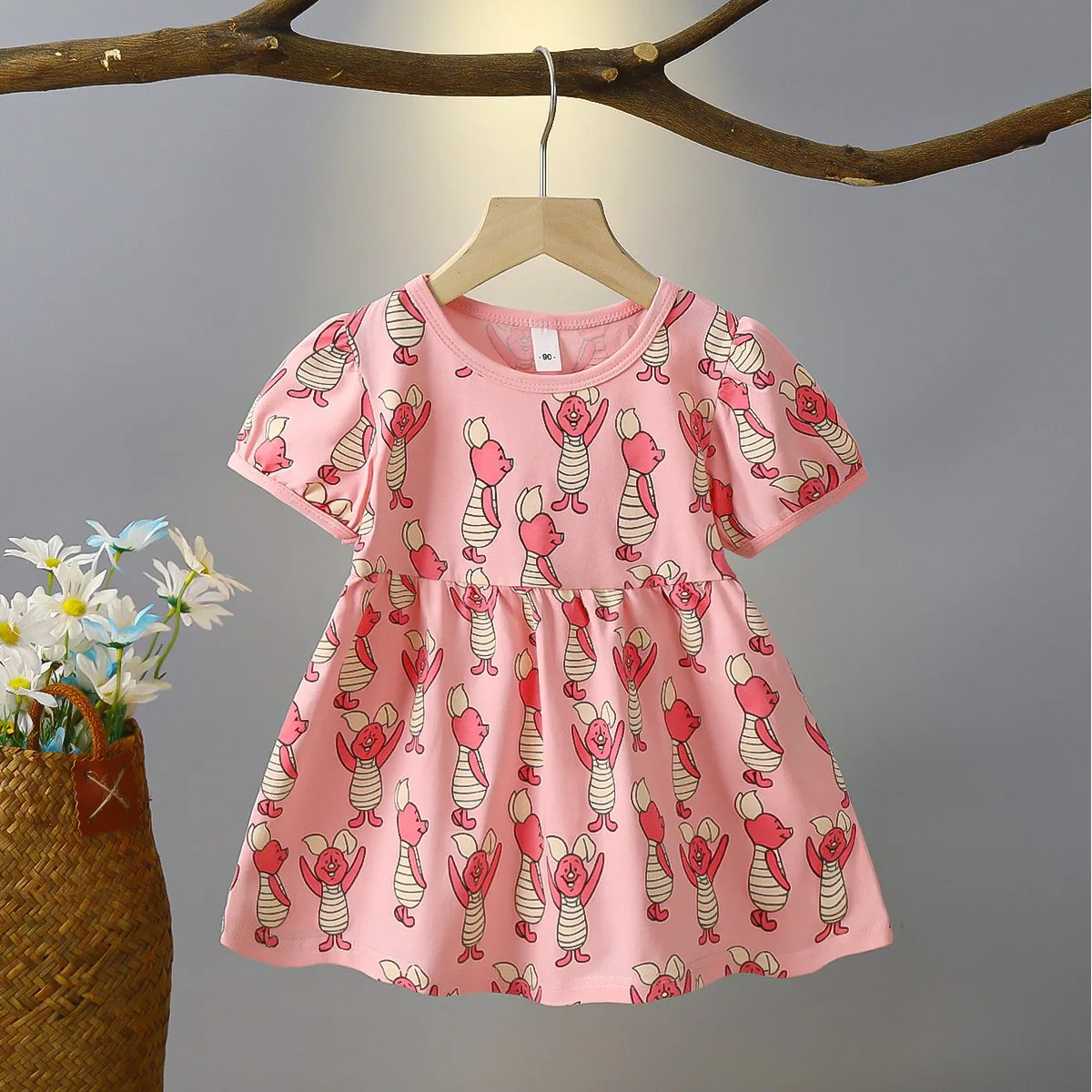Comprar Novedad de verano, vestidos de cuello redondo con estampado completo de dibujos animados, ropa de Disney, vestido bonito Casaul, ropa exterior para falda de manga corta de 1 a 4 años