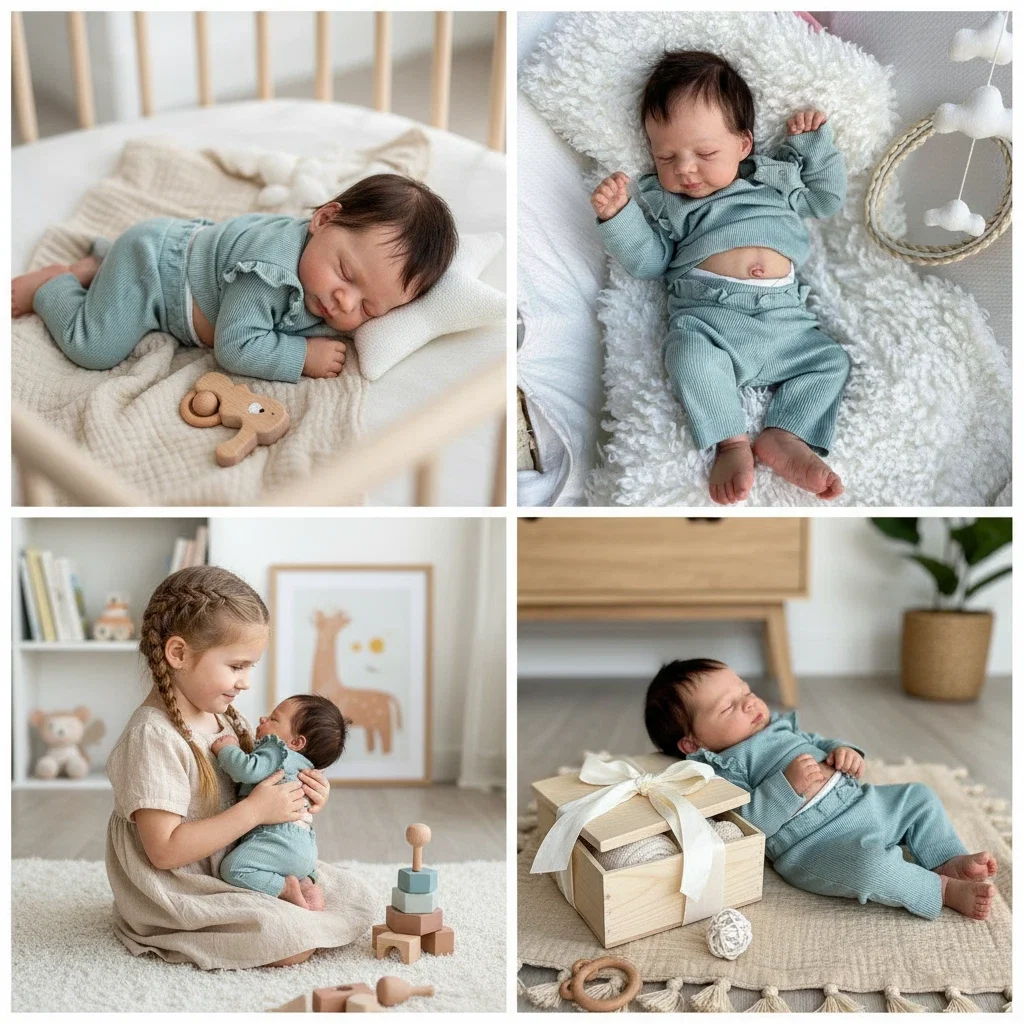 Material y estructura:Vinilo de silicona de cuerpo completo que ensamblan muñecas, tacto suave y realista, flexible.La muñeca se puede poner en agua para bañarse o ducharse, simplemente déjela secar por completo;La cabeza, las piernas y los brazos de la muñeca recién nacida están hechos de vinilo de silicona suave, producción segura, no tóxico;La muñeca es totalmente articulada, la cabeza y las extremidades se pueden mover libremente.sentarse o acostarse, no puede hablar ni comer.Contenido del paquete:Muñeca, chupete magnético, biberón, certificado de nacimiento.(Los peluches y la ropa no están incluidos)Aplicación:Regalos de cumpleaños infantiles, juguetes infantiles, regalos de Navidad para bebés o enamorados y colecciones de coleccionistas.
