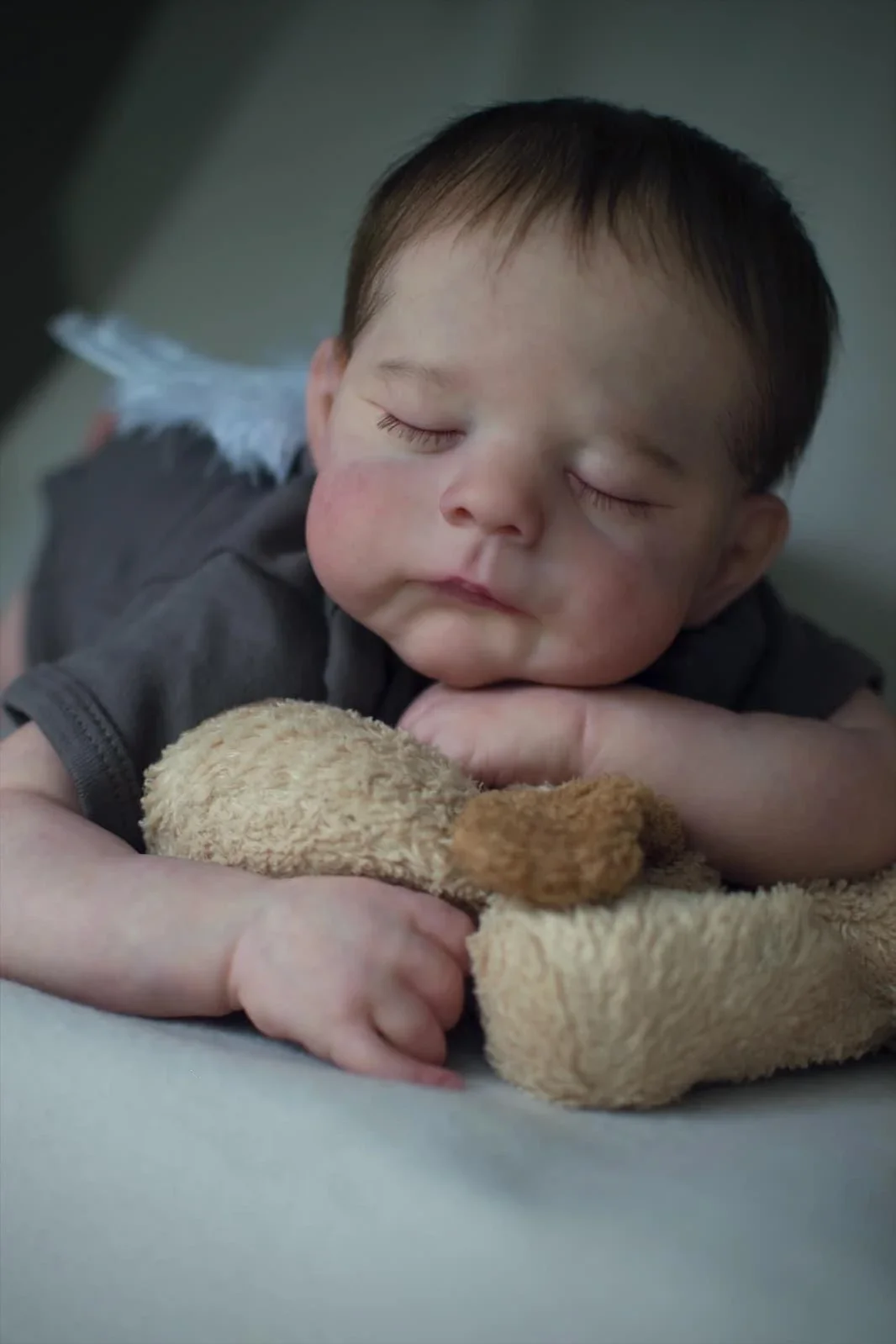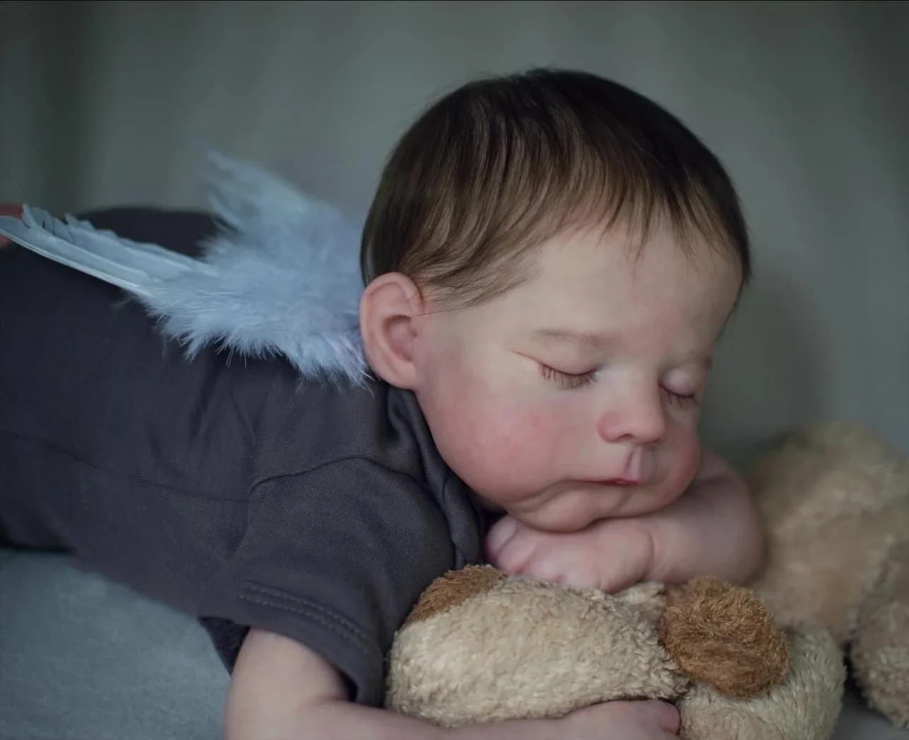 Cuerpo de tela suave, mucho más vida y suave, muy tierno, como el bebé real cuando lo abrazas.