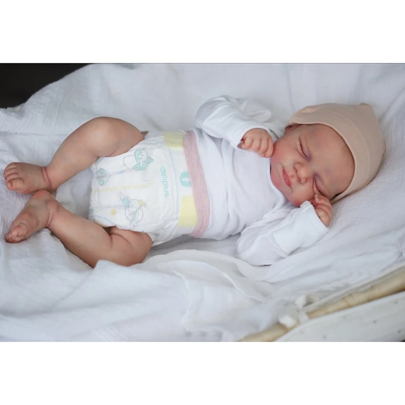 Comprar NPK-Muñeca Reborn de bebé recién nacido, bebé durmiendo realista, tacto suave, pelo dibujado a mano, 48cm
