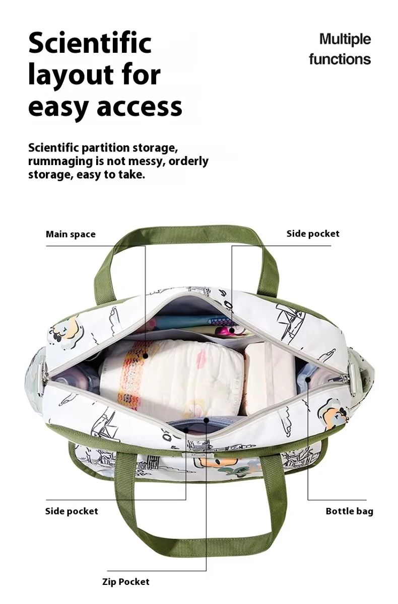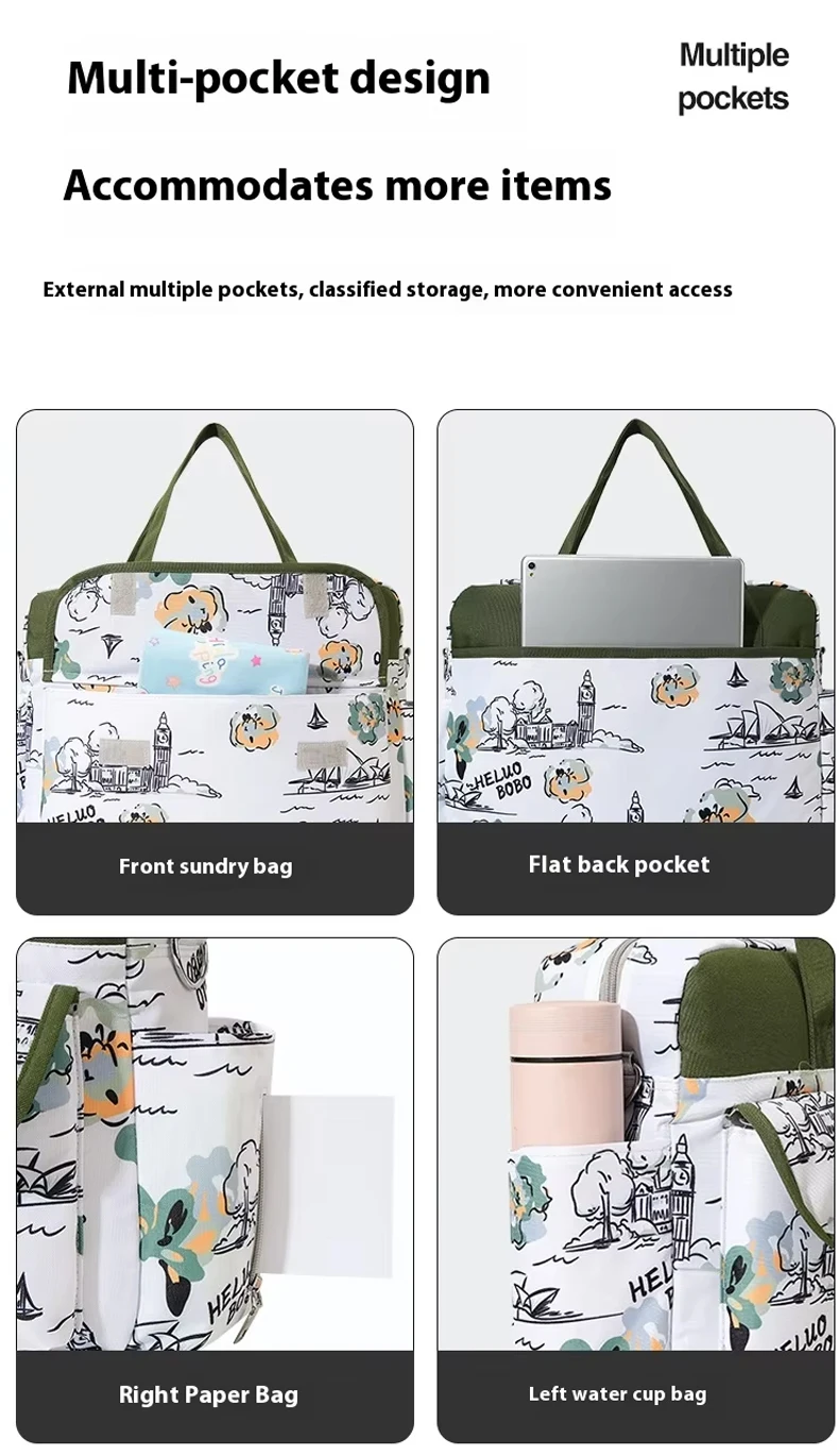 Nueva bolsa de almacenamiento multifuncional para madres y bebés, bolsa colgante para cochecito de nailon de mano con botella aislada, característica impermeable para mamás