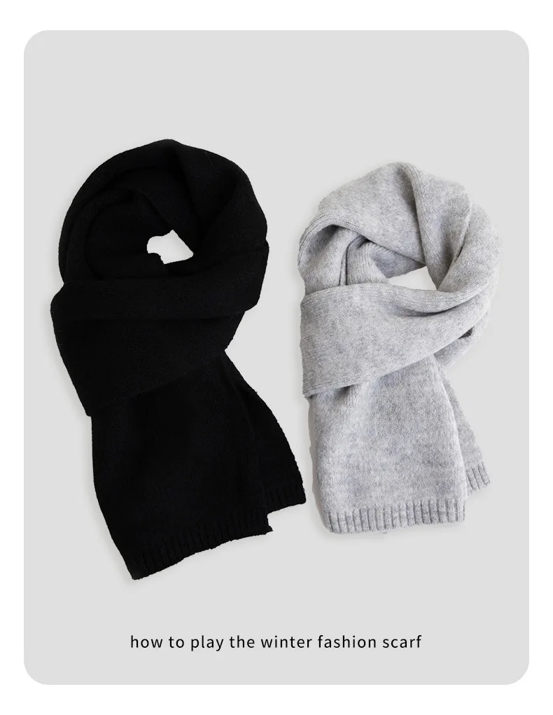 Comprar Nueva bufanda versátil para mujer, Color sólido de invierno de alta gama, chal de punto grueso, cuello cálido de doble propósito