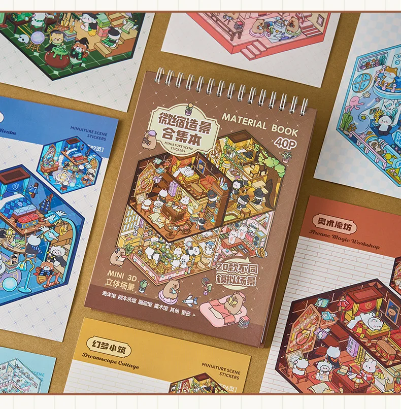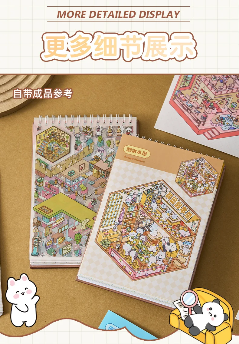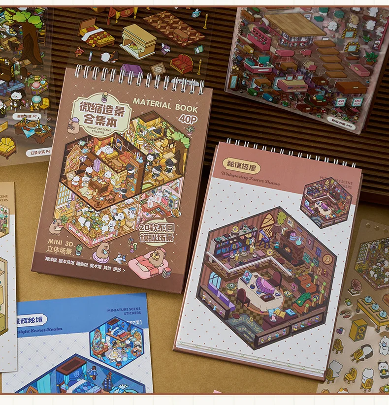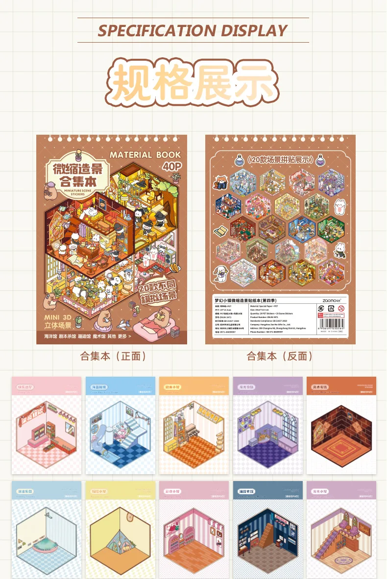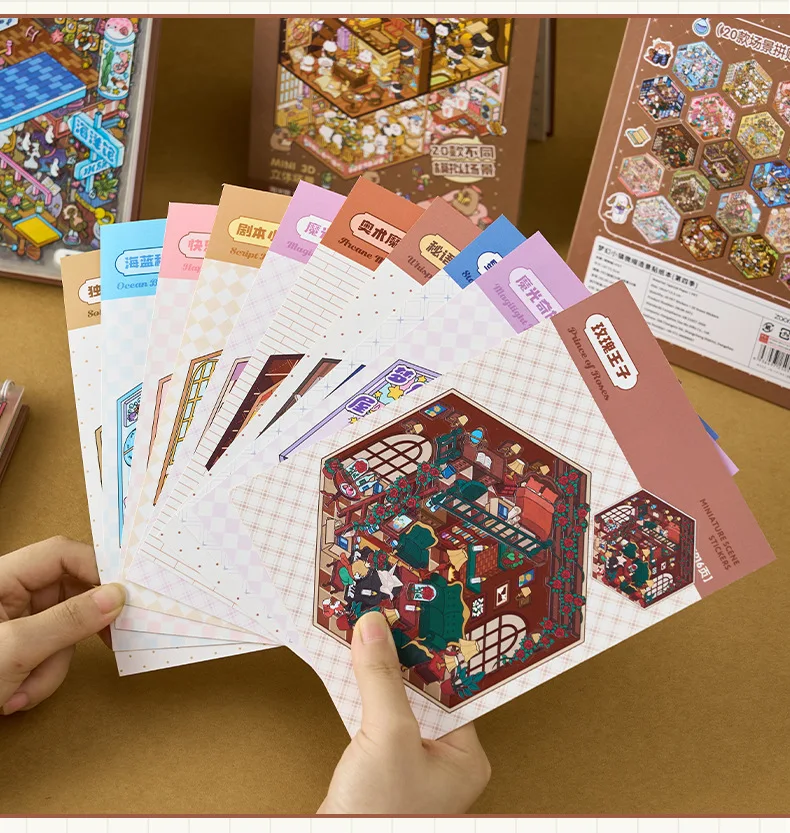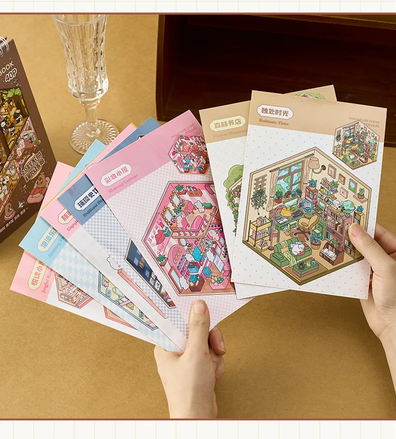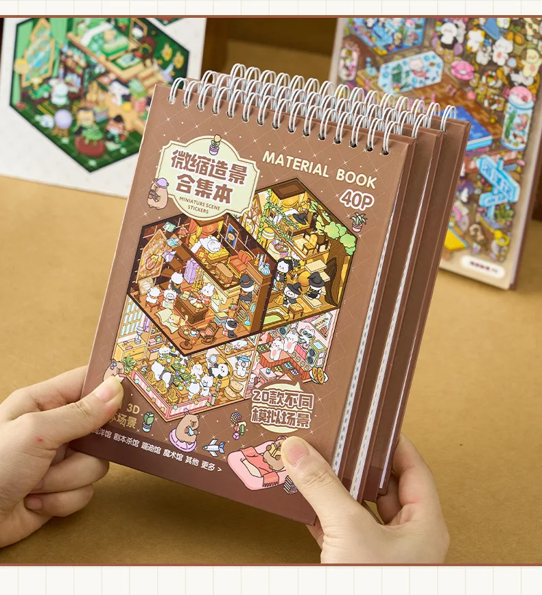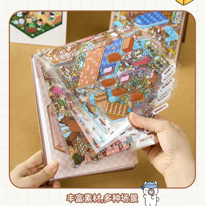 Nueva cabina pegatina de paisaje libro de bolsillo DIY escena de dibujos animados libro de pegatinas 3D álbum de pegatinas libros de juego regalo de Festival