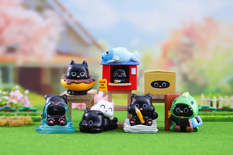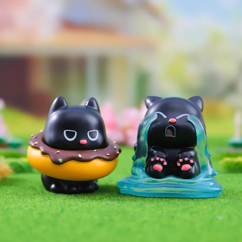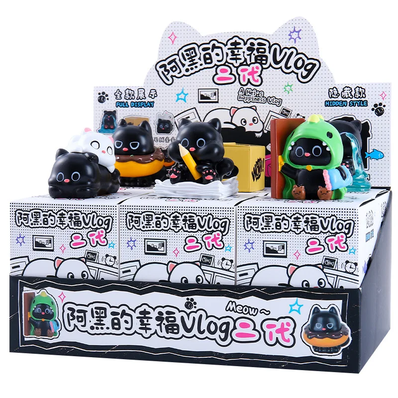 Comprar Nueva caja ciega de gato negro Happy Life Cat Serise 2 figuras de Anime muñecas bolsa ciega caja misteriosa decoración niños regalo de Navidad