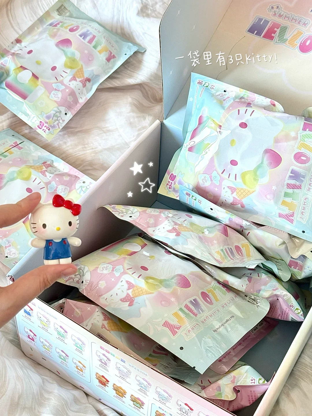 Nueva caja ciega de la serie Hello Kitty Summer Rainbow Candy, Mini figuras de acción Kawaii, decoración, bolsas sorpresa, adornos, regalos coleccionables