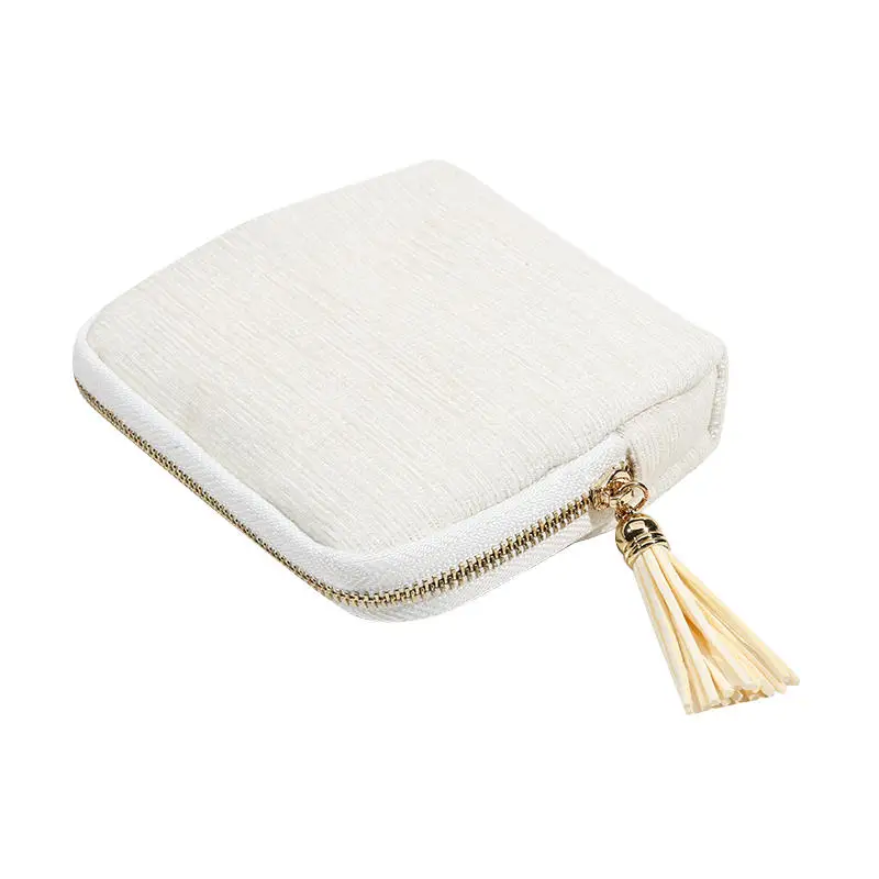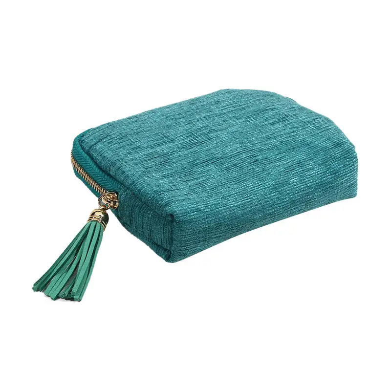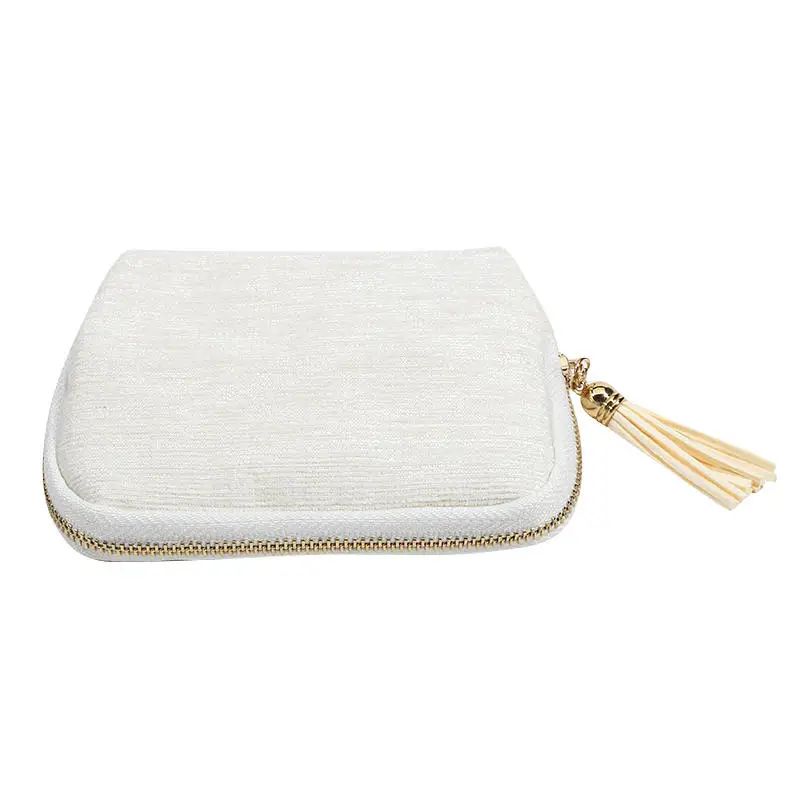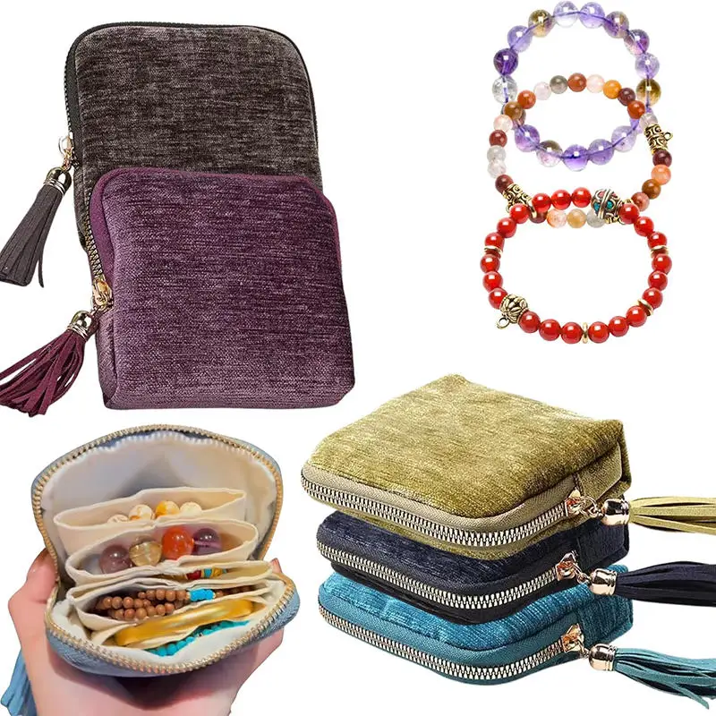 Comprar Nueva caja de joyería con borlas y cremallera a la moda, bolsa de joyería portátil con cremallera, bolsas protectoras para almacenamiento de collares y pulseras de cuentas de viaje pequeñas