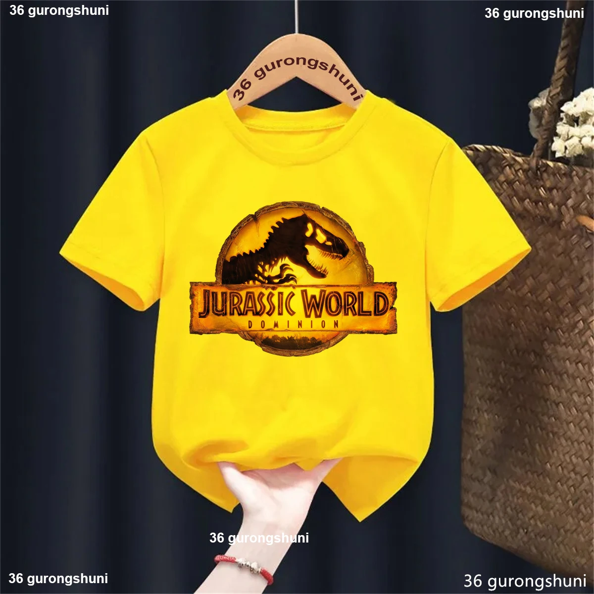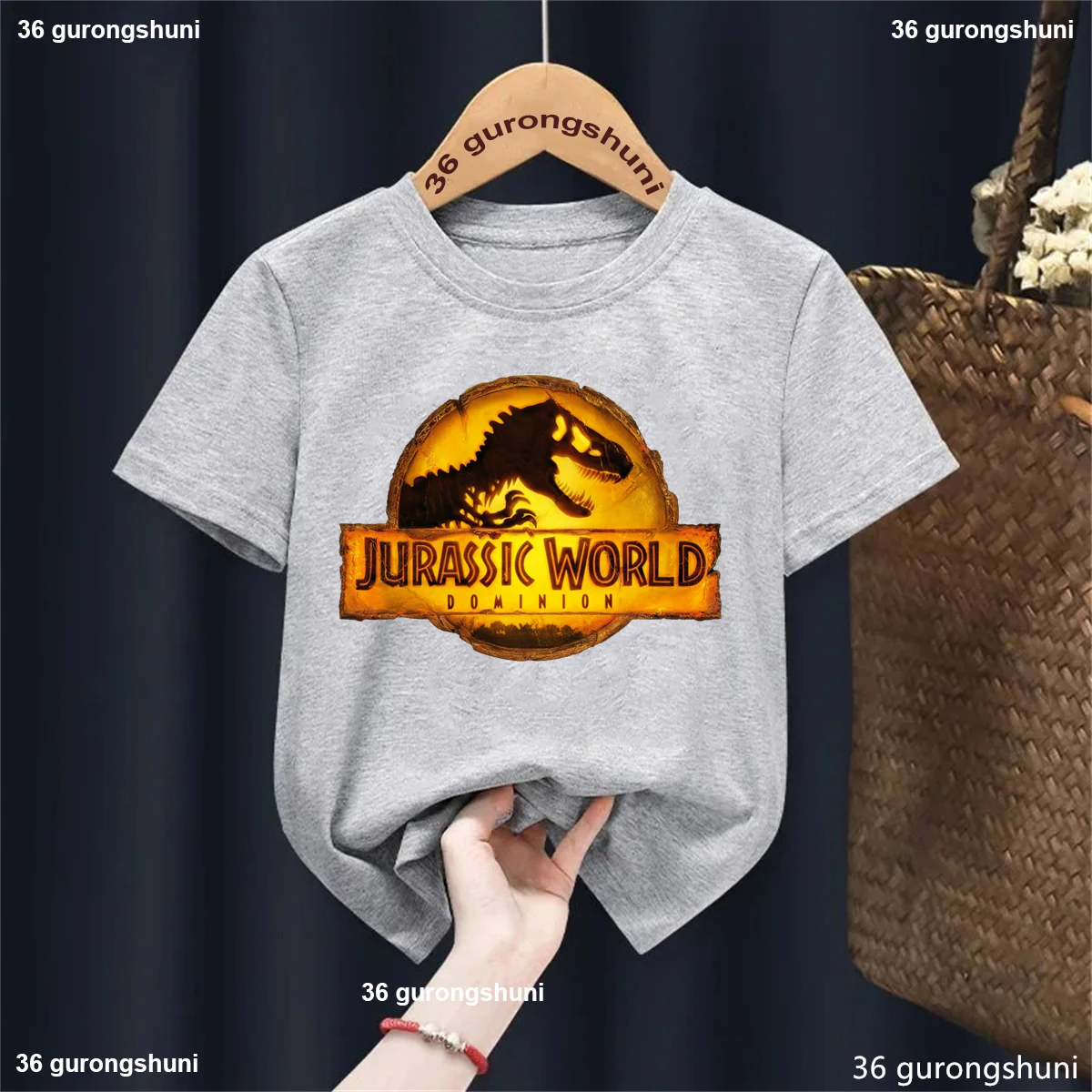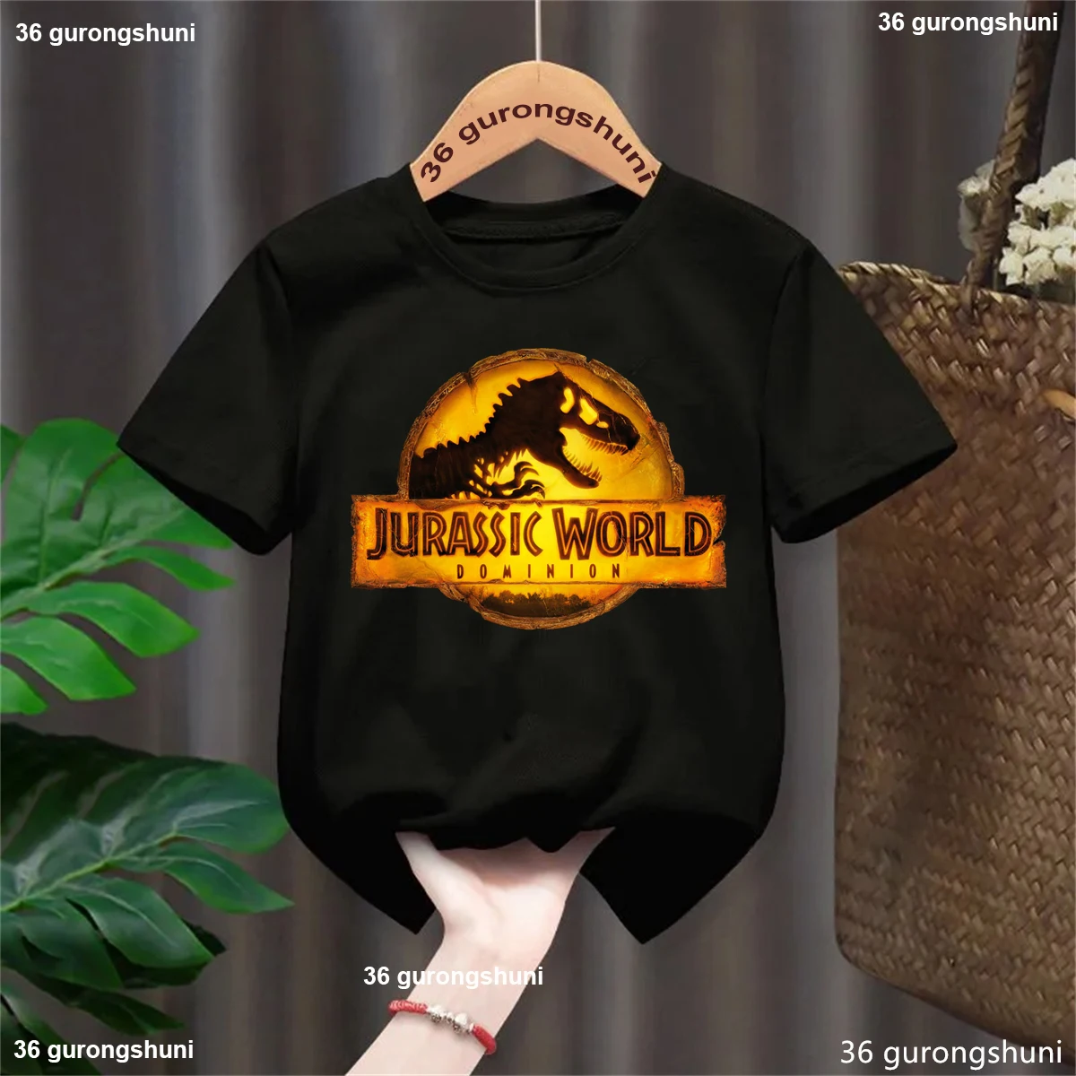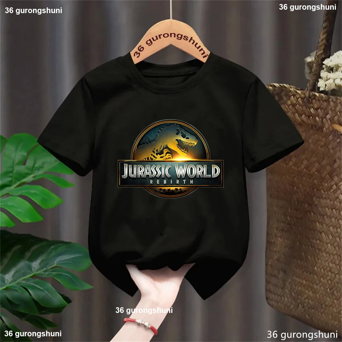 Nueva camiseta de dinosaurio con Logo de renacimiento de Dino Jurassic Park, camiseta de Color negro para niños y niñas, ropa para bebés, camisetas Harujuku de manga corta