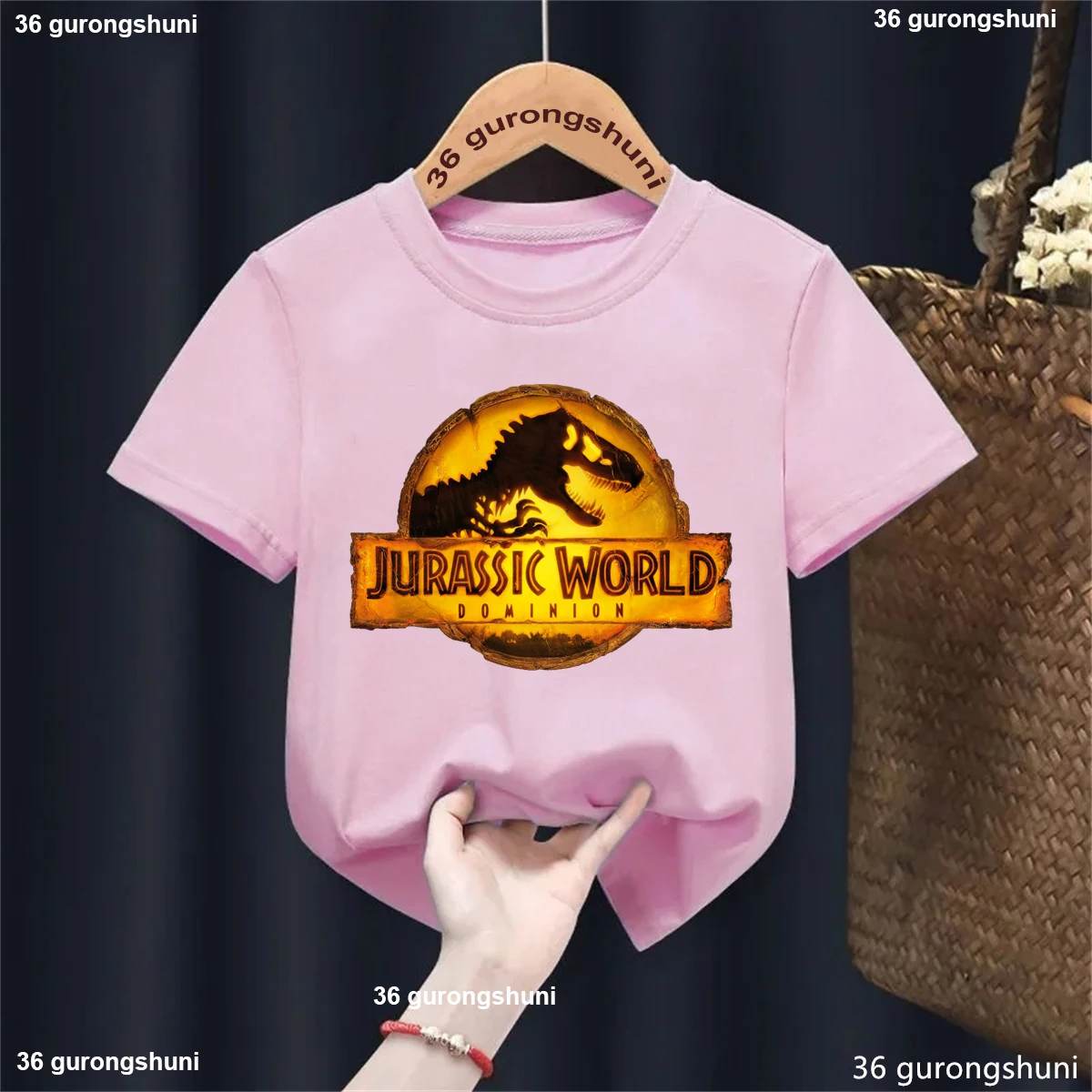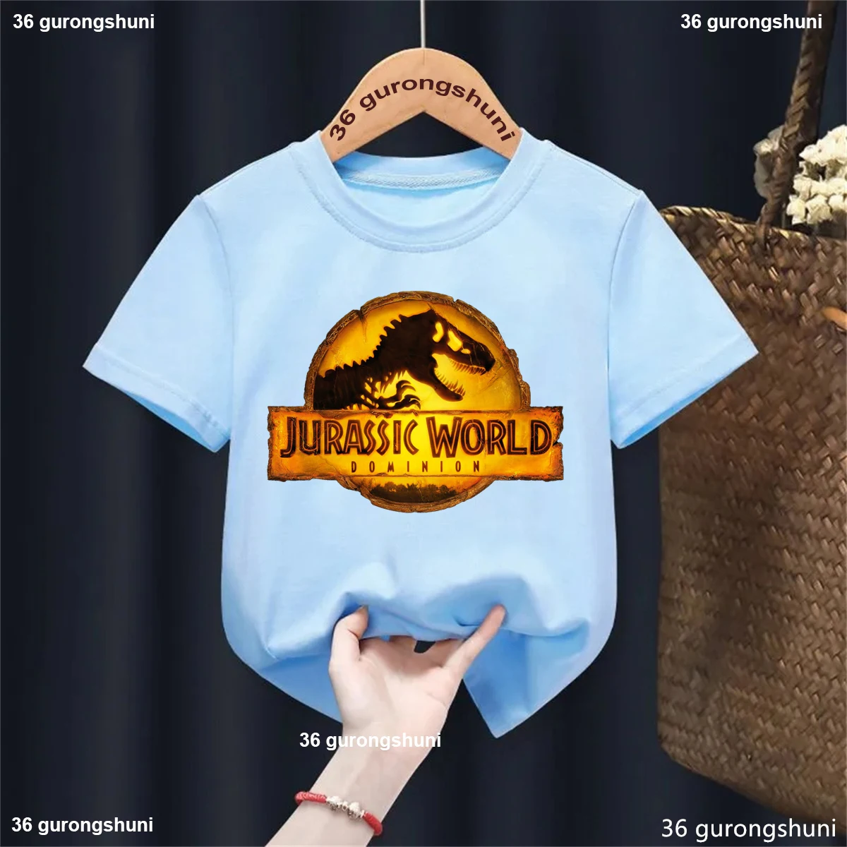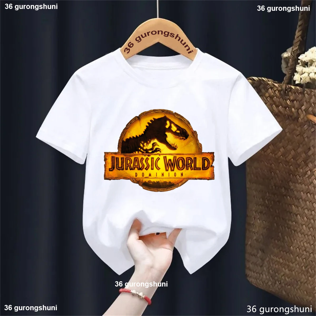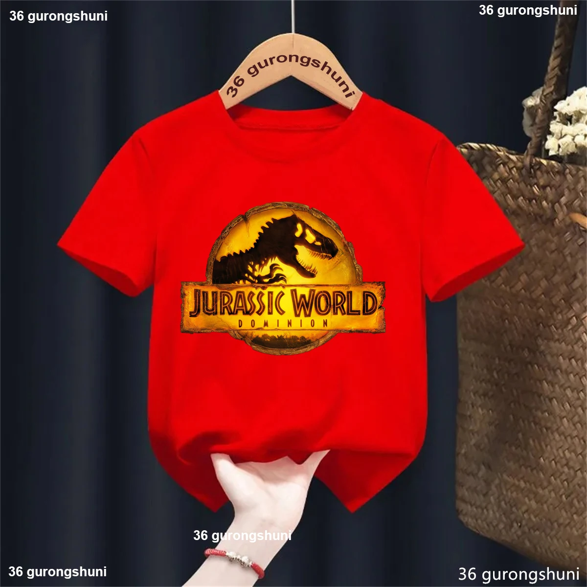 Nueva camiseta de dinosaurio con Logo de renacimiento de Dino Jurassic Park, camiseta de Color negro para niños y niñas, ropa para bebés, camisetas Harujuku de manga corta