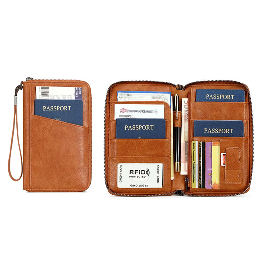Nueva cartera con Clip para pasaporte de viaje para mujeres y hombres, tarjetero multifuncional de cuero PU RFID, billeteras antirrobo, bolsa de almacenamiento