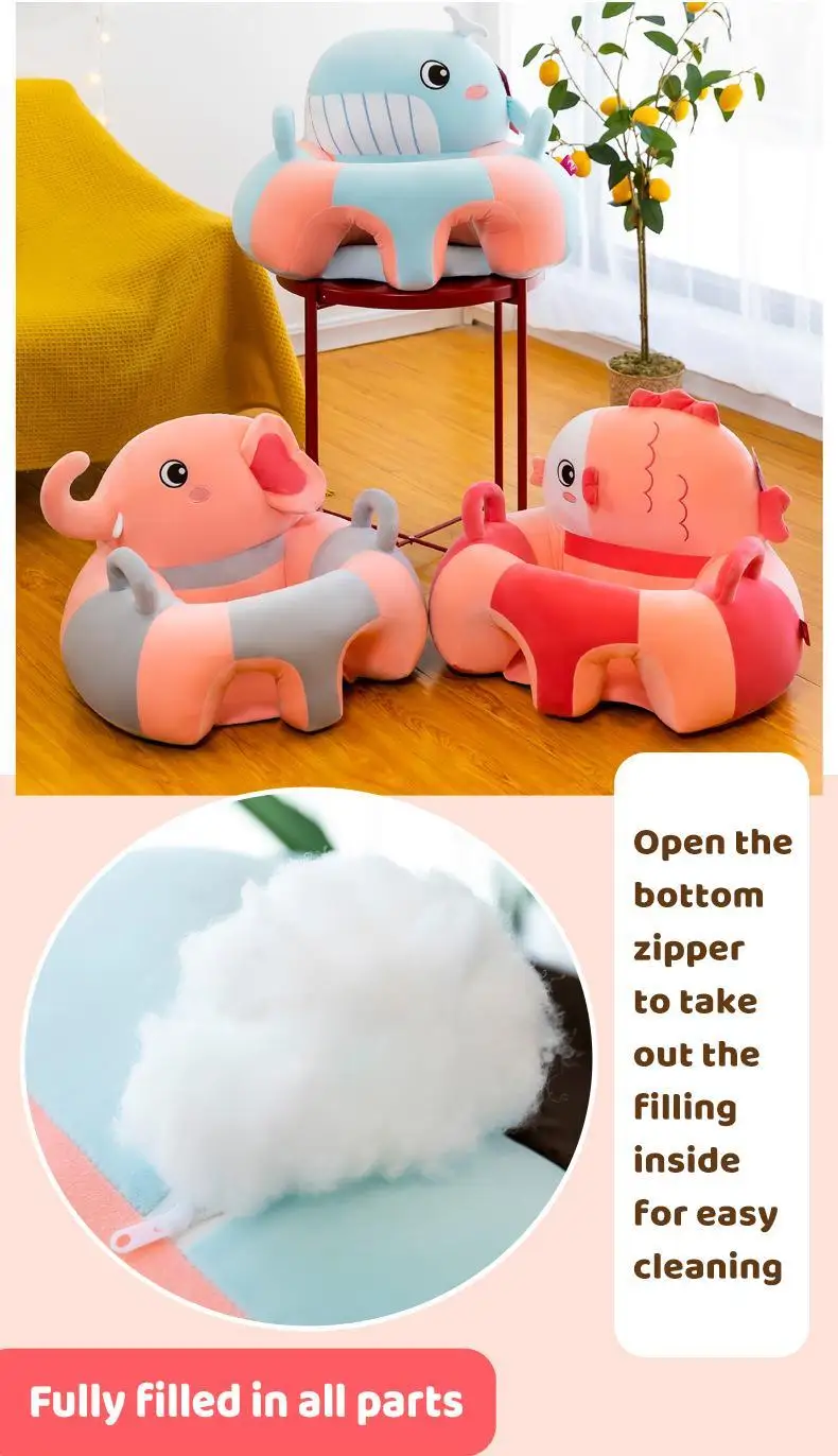 Nueva bonita piel de sofá de dibujos animados para asiento de bebé, funda de sofá para silla de aprendizaje, funda lavable solo con cremallera sin algodón PP