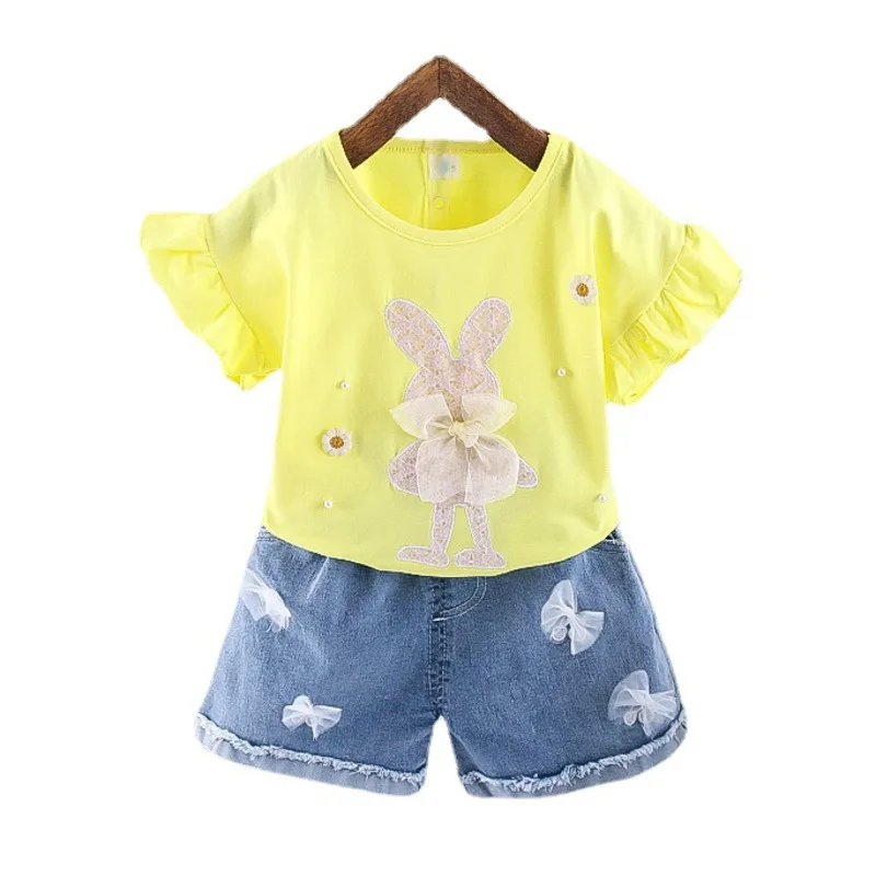 Comprar Nueva moda de verano, ropa para niñas, traje para niños, camiseta bonita, pantalones cortos, 2 unids/set, traje informal para niños, trajes, chándales para niños