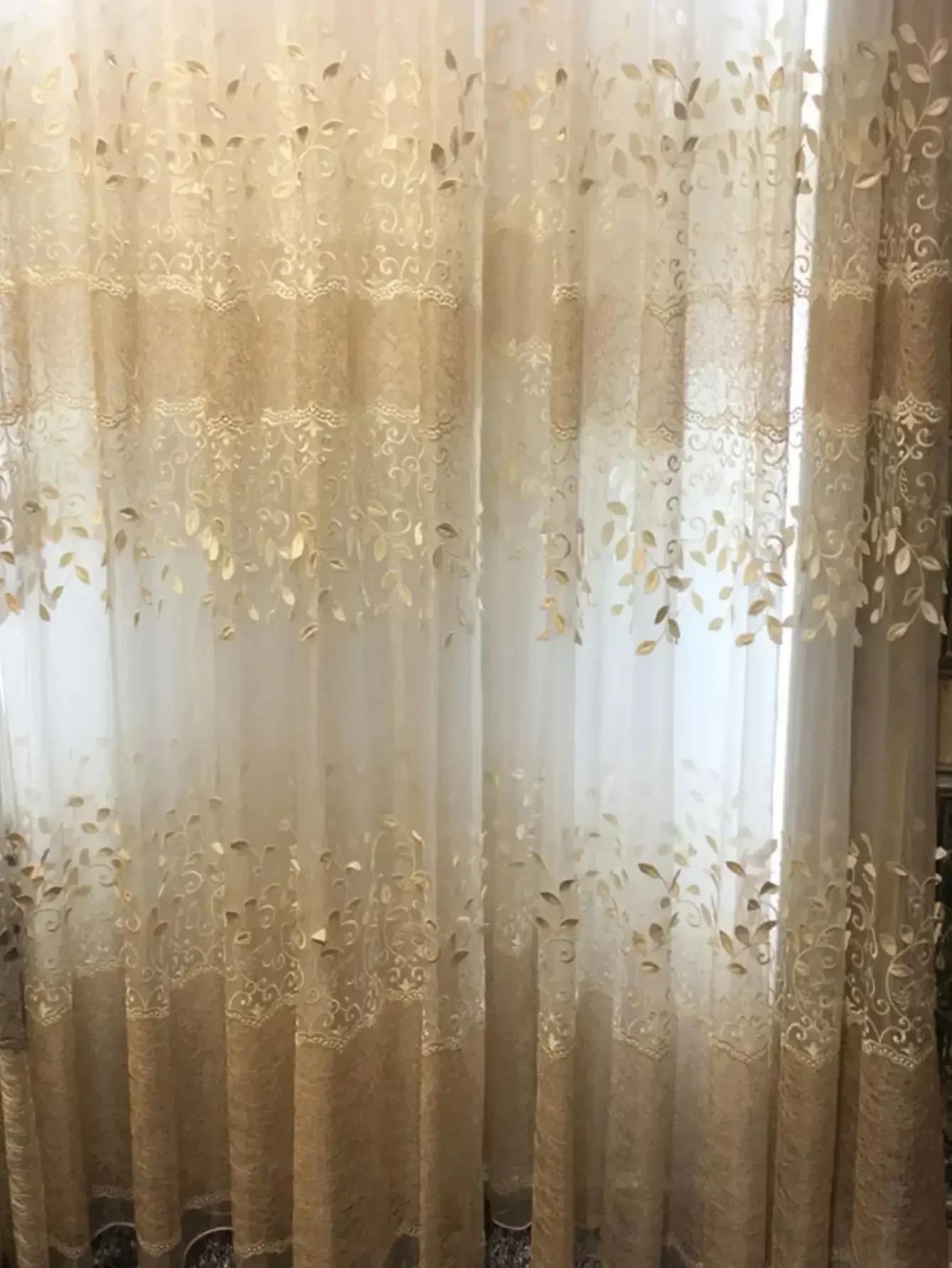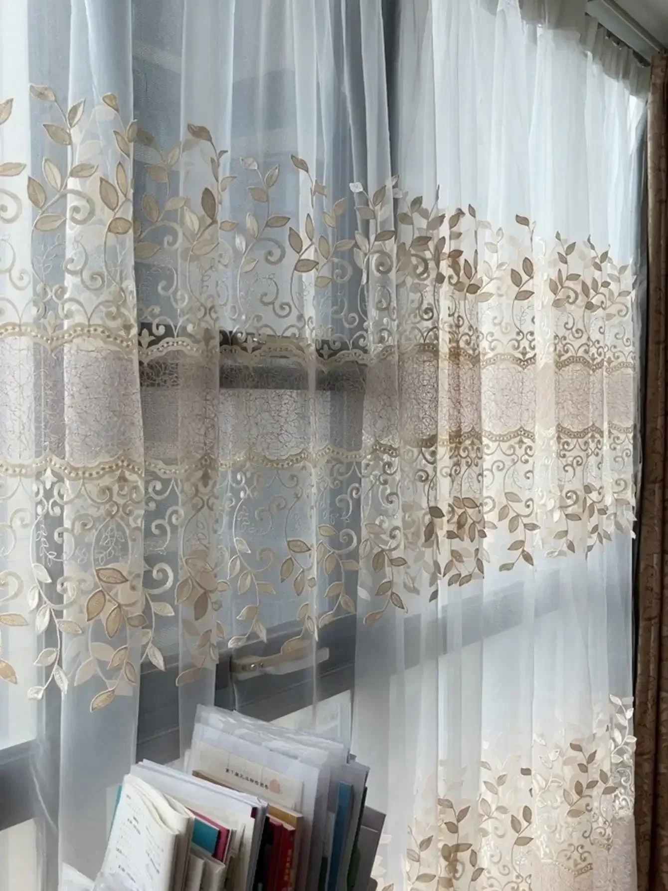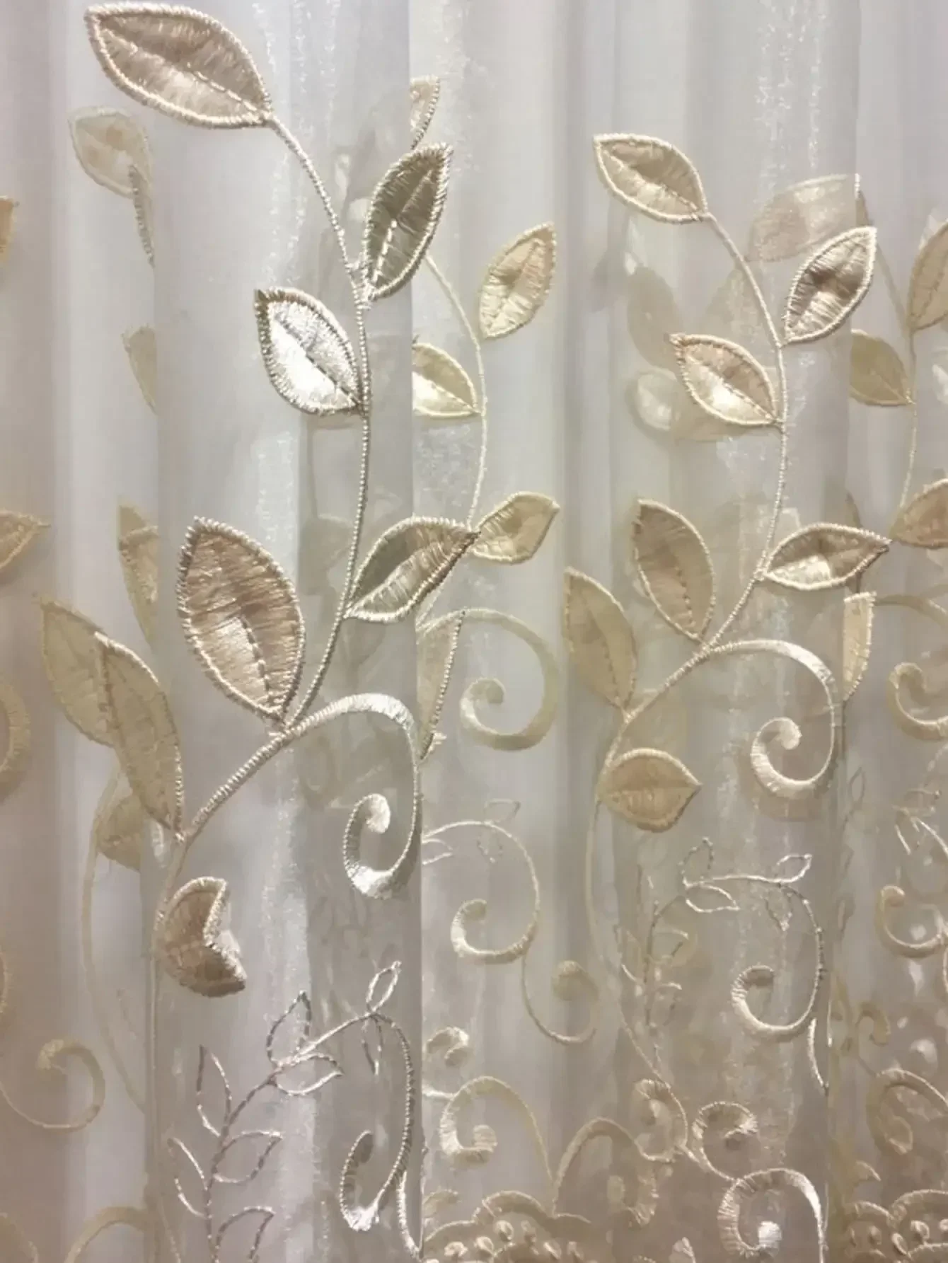 Comprar Nueva y moderna cortina de ventana con relieve de hojas bordadas Beige, 1 unidad, cortina bordada de lujo con flores a presión de viento europea y americana