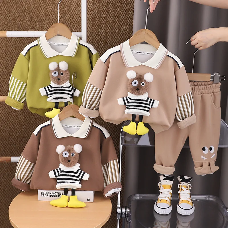 Comprar Nueva ropa de bebé de primavera y otoño, camiseta de manga larga para niños, pantalones, 2 unids/set, ropa de moda para niños y niñas, chándales infantiles