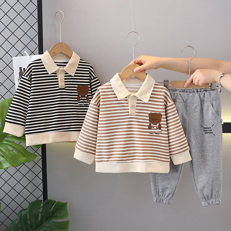Nueva primavera otoño ropa de bebé niños a rayas camiseta de manga larga pantalones 2 unids/set trajes casuales infantiles chándales para niños de 0 a 5 años