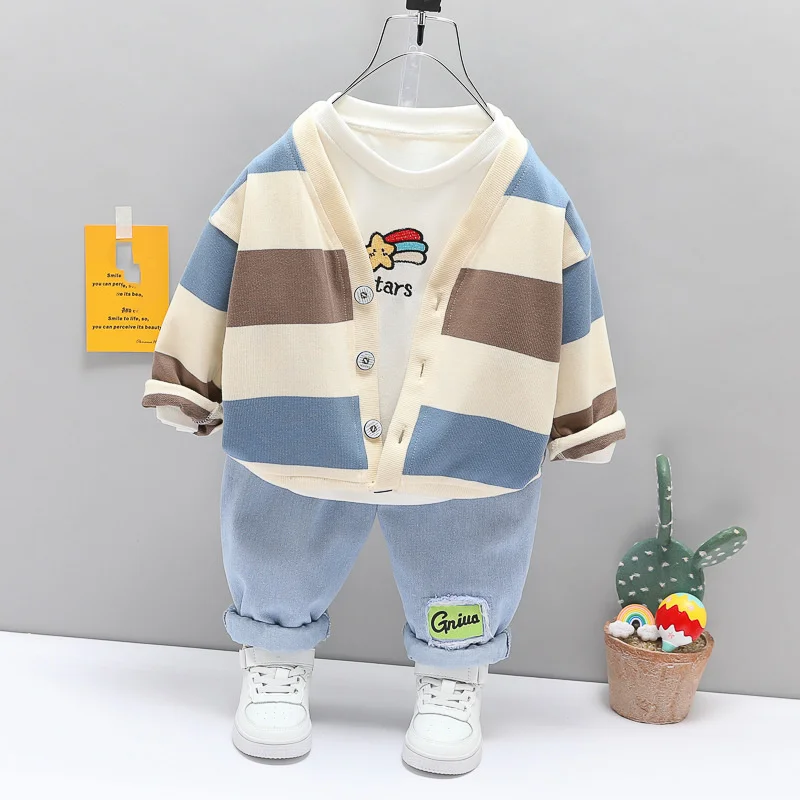 Nueva primavera otoño ropa de bebé niños chaqueta Casual camiseta pantalones 3 unids/set disfraz para niños ropa infantil chándales para niños de 0 a 4 años