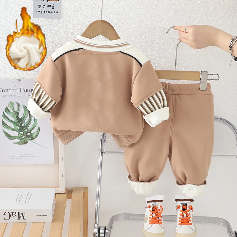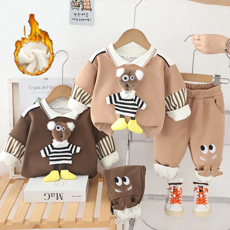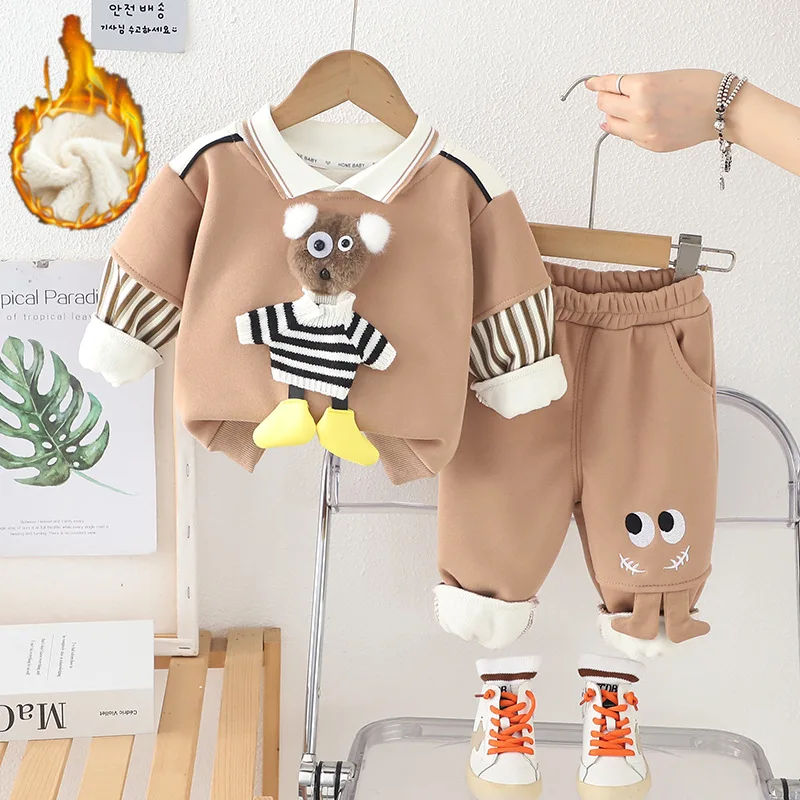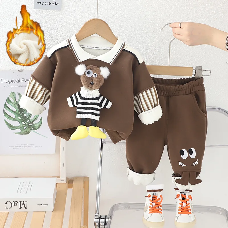 Nueva ropa de invierno para niñas, traje para niños, camiseta gruesa y cálida de dibujos animados, pantalones, 2 unids/set, ropa para niños, disfraz informal infantil para 0-5 años