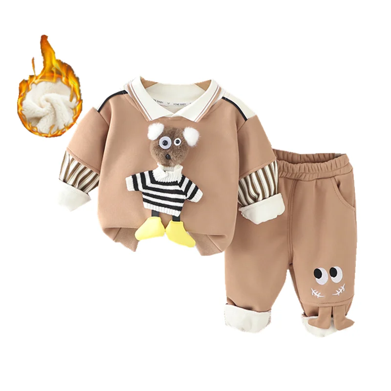 Nueva ropa de invierno para niñas, traje para niños, camiseta gruesa y cálida de dibujos animados, pantalones, 2 unids/set, ropa para niños, disfraz informal infantil para 0-5 años