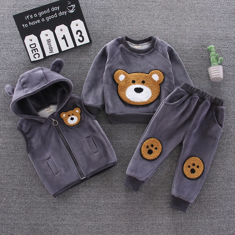 Nueva ropa de invierno para niña, traje para niños, chaleco con capucha de dibujos animados, camiseta, pantalones, 3 unids/set, disfraz deportivo para niños pequeños, chándales para niños de 0 a 5 años