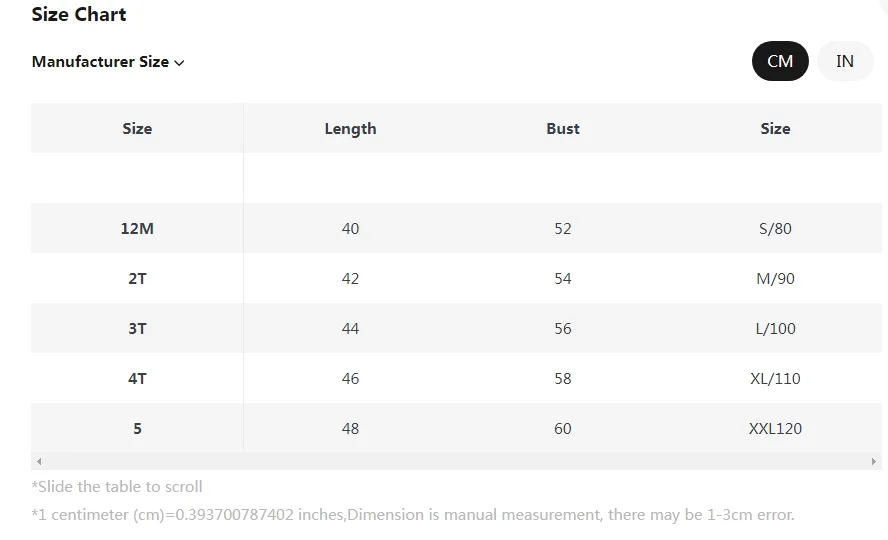 Warm prompt:Dear customer, because the label of each country is different, so please check the detailed measurements, according to the child's height and weight to choose the right size, if you have any questions, please send information to us, we will reply within 12 hours, thank you !