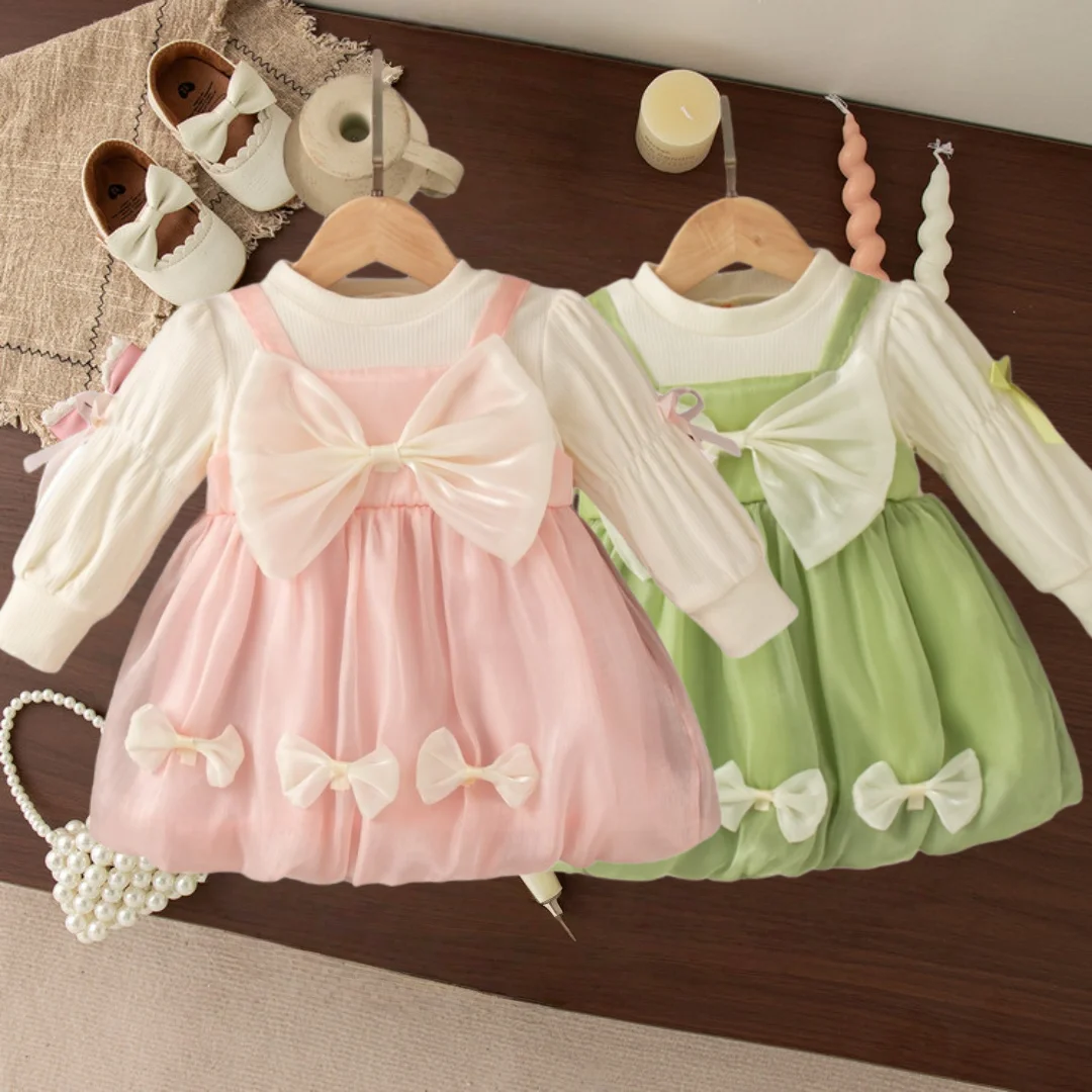 - **Acento de lazo dulce**: Presenta lindos detalles de lazo (en el pecho/cintura, según el diseño) que realzan el ambiente dulce y femenino, haciendo que el vestido se destaque para niños y padres.