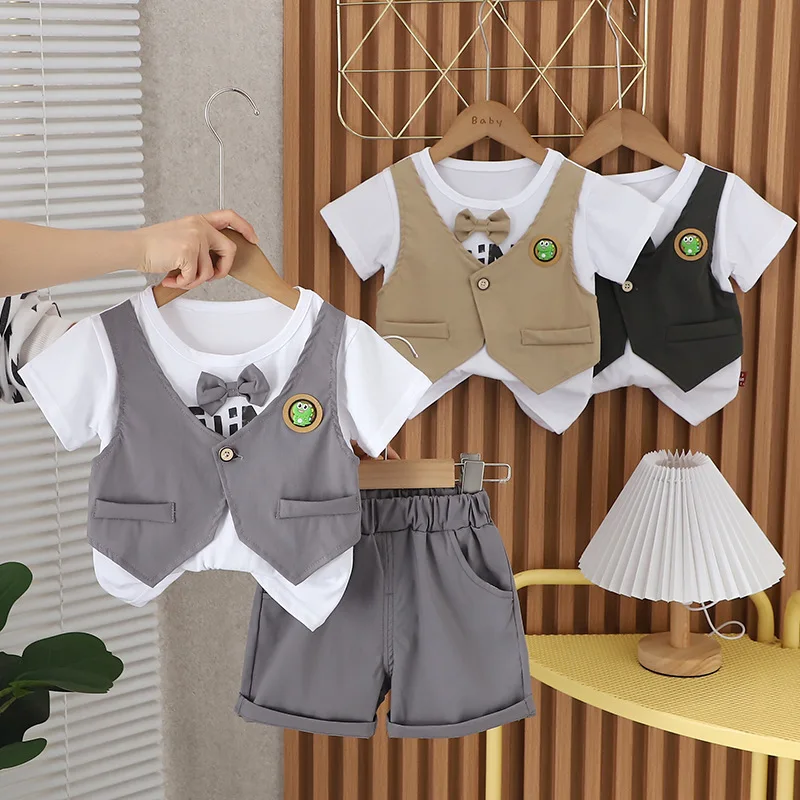 Nueva ropa de verano para bebés, camiseta para niños y pantalones cortos, 2 unids/set, ropa para niños pequeños, disfraz informal de moda infantil, chándales para niños de 0 a 5 años