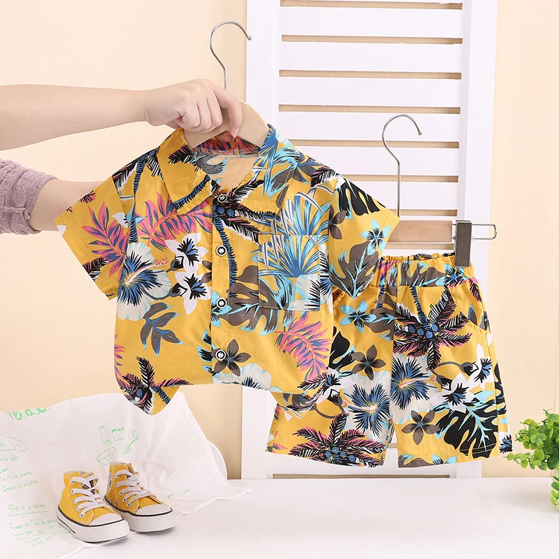 Nueva ropa de verano para bebés, traje para niños, camisa de manga corta, pantalones cortos, 2 unids/set, conjunto de ropa a la moda para niños, disfraz estampado infantil para 0-5 años