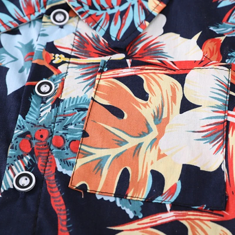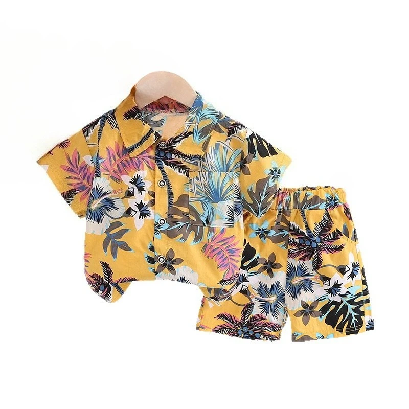 Nueva ropa de verano para bebés, traje para niños, camisa de manga corta, pantalones cortos, 2 unids/set, conjunto de ropa a la moda para niños, disfraz estampado infantil para 0-5 años