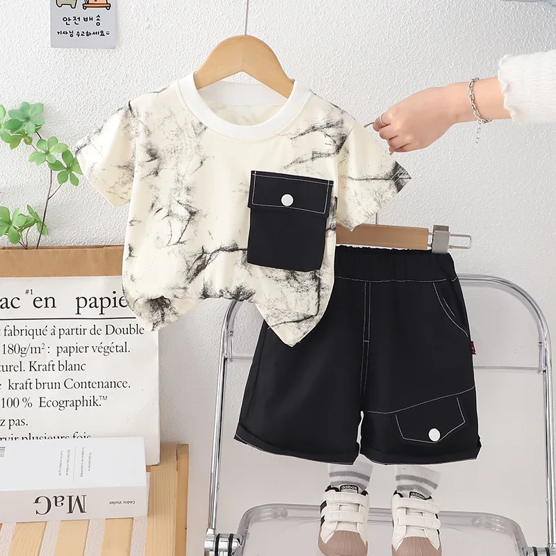 Comprar Nueva ropa de verano para bebés, traje para niños, camiseta de manga corta, pantalones cortos, 2 unids/set, traje informal de algodón para niños, chándales para niños