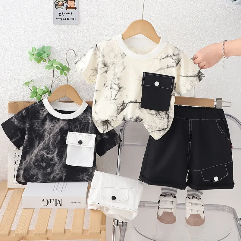 Comprar Nueva ropa de verano para bebés, traje para niños, camiseta de manga corta, pantalones cortos, 2 unids/set, traje informal de algodón para niños, chándales para niños