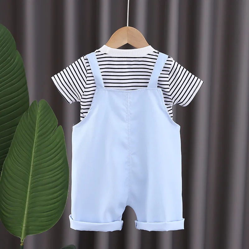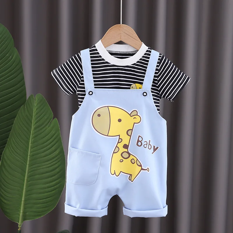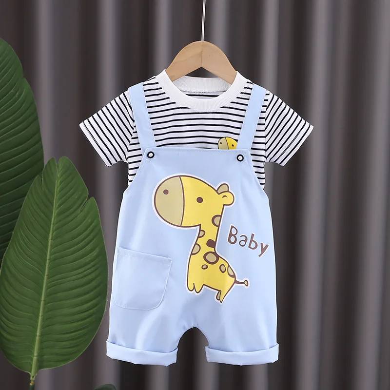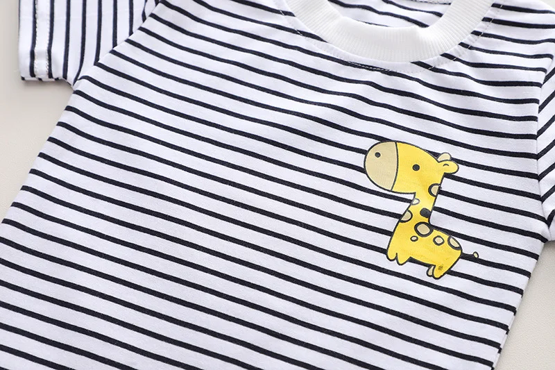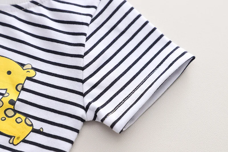 Nueva ropa de verano para bebés, traje para niños, camiseta a rayas, pantalones cortos, 2 unids/set, ropa para niñas, disfraz de algodón de dibujos animados para niños pequeños de 0 a 4 años