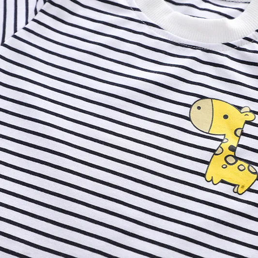 Nueva ropa de verano para bebés, traje para niños, camiseta a rayas, pantalones cortos, 2 unids/set, ropa para niñas, disfraz de algodón de dibujos animados para niños pequeños de 0 a 4 años