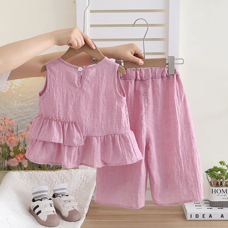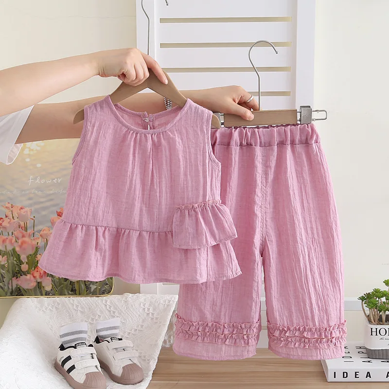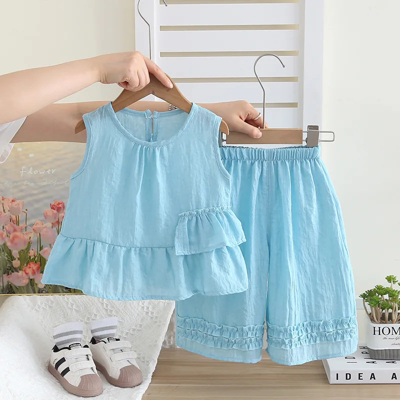 Nueva ropa de verano para bebés, traje para niñas, chaleco sin mangas, pantalones cortos, 2 unids/set, ropa deportiva informal para niños pequeños, chándales para niños de 0 a 5 años
