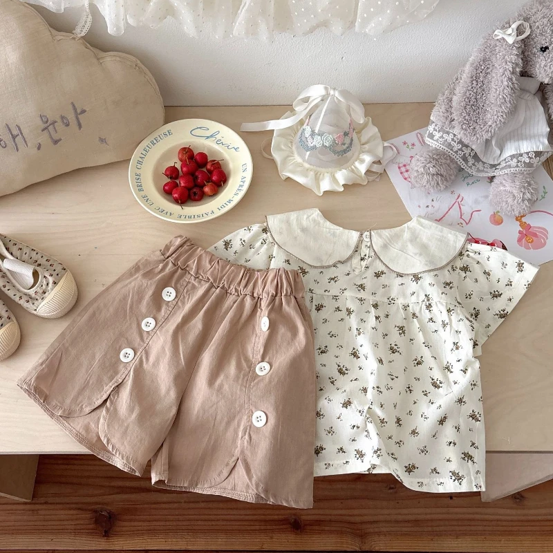 Comprar Nueva ropa de verano para niñas, traje informal para niños, camiseta de manga corta, pantalones cortos, 2 unids/set, ropa infantil de moda, chándales para niños