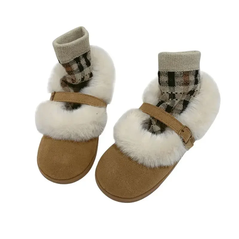Comprar Nueva versión de invierno, zapatos para niños, zapatos informales de felpa antideslizantes, zapatos cómodos para mujeres, botas de algodón cálidas para bebés, botas de nieve simples para niños