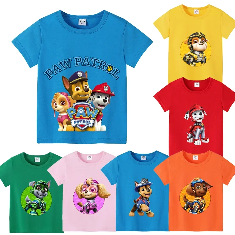 Nuevas camisetas de Paw Patrols para niños, figuras de dibujos animados de Anime, camiseta de manga corta Chase Skye, camisetas de moda para niños y niñas, ropa de verano, regalo bonito