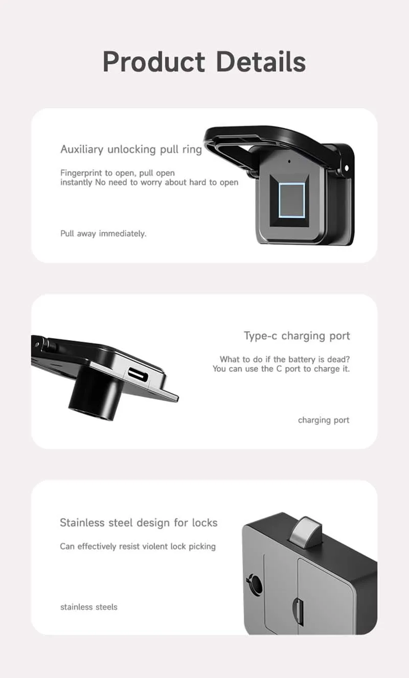 Nuevas cerraduras de huellas dactilares cerradura de cajón inteligente sin llave negra huellas dactilares biométricas cerradura de seguridad para bebés candado de puerta de armario de cabecera para el hogar